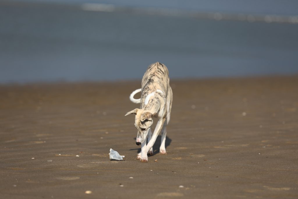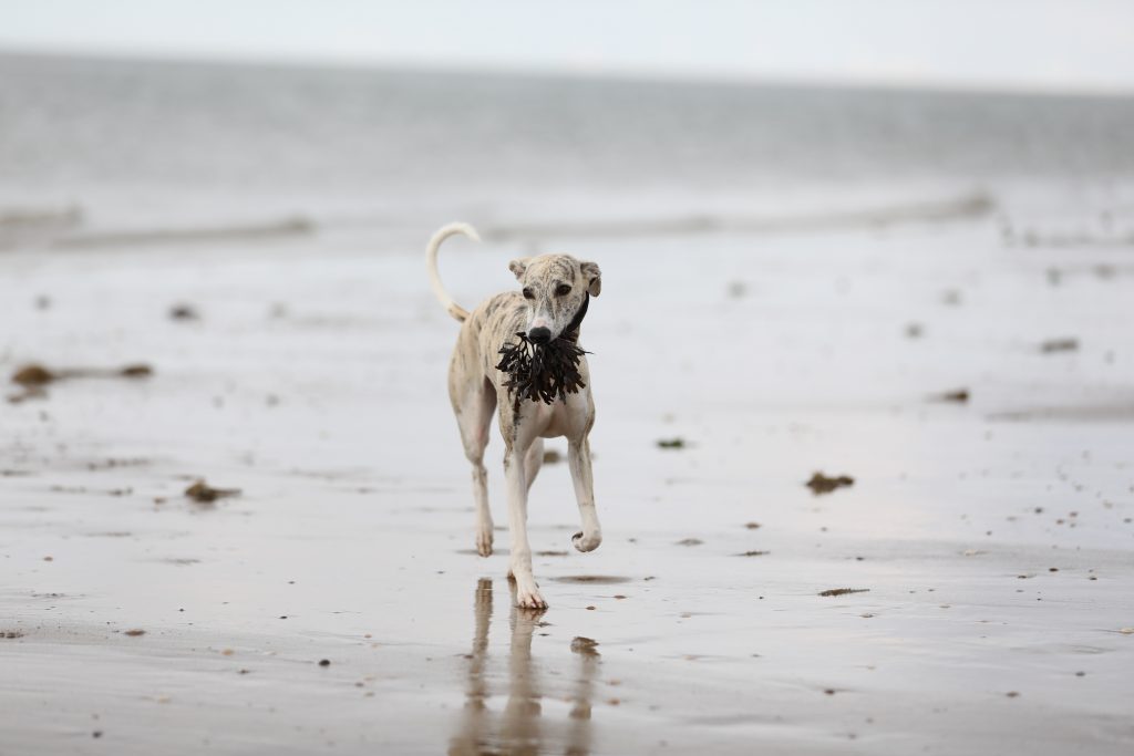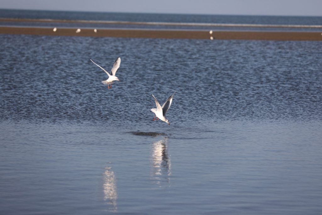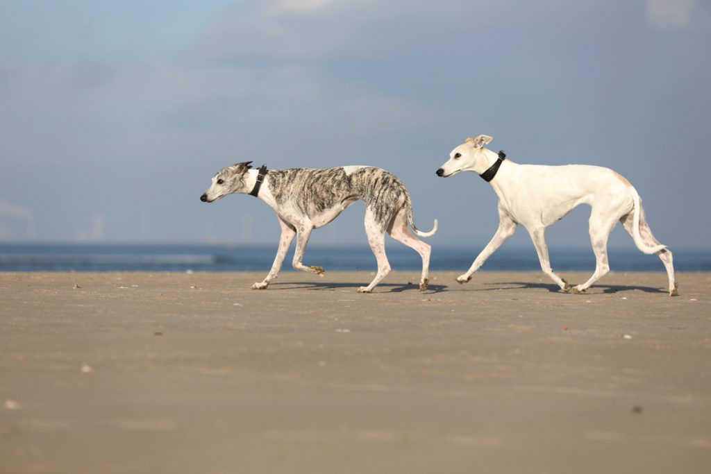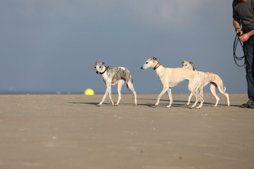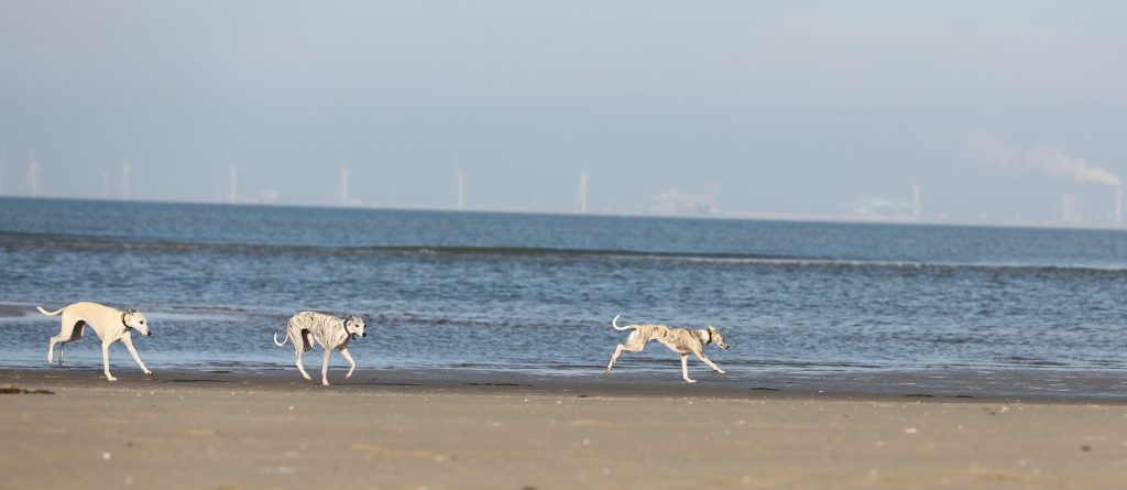 tatsächlich hat der Wind ein Stückchen Müll heran geweht. Ein gefundenes „Spielzeug“ für Queenie, die am liebsten 24/7 irgendetwas in der Schnute hatGeiersturzflug…Möwen dürfen auf den Touristenfotos nicht fehlen…auf zur nächsten großen RundeJoy, Juli und Queenieim leichten Trab- Marsch! Joy und EveMädels, falsche Richtung! Wir wollen nach links!, der Sonne entgegen! Juli, Joy und Queenie.