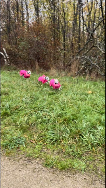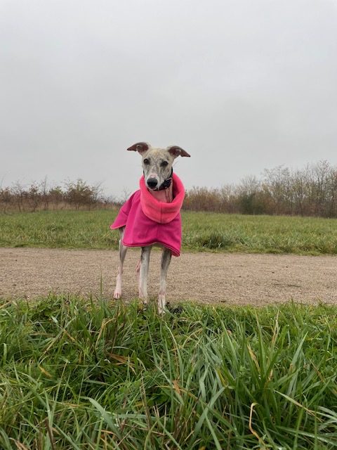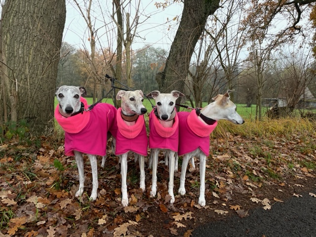 Im Herbst 2021 haben unsere drei Mädchen diese wundervoll leuchtenden Mäntel in magenta/ neon-pink bekommen. Zu der Zeit war das Queenchen aber noch nicht bei uns.