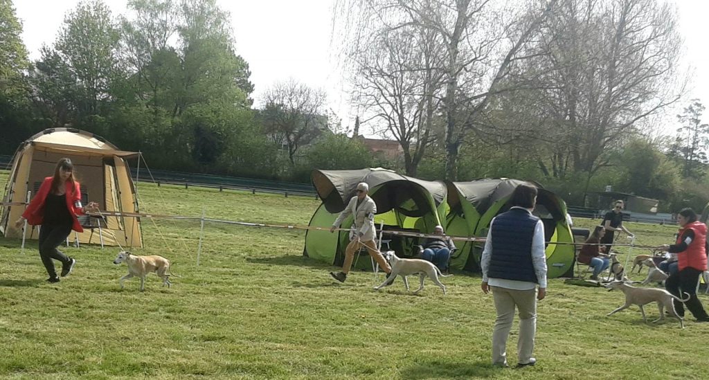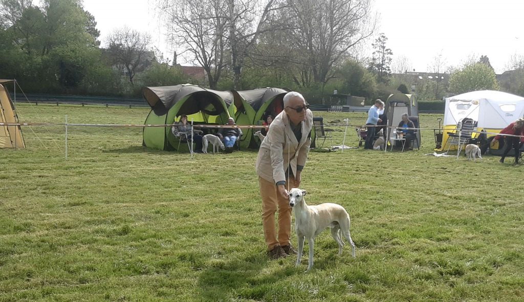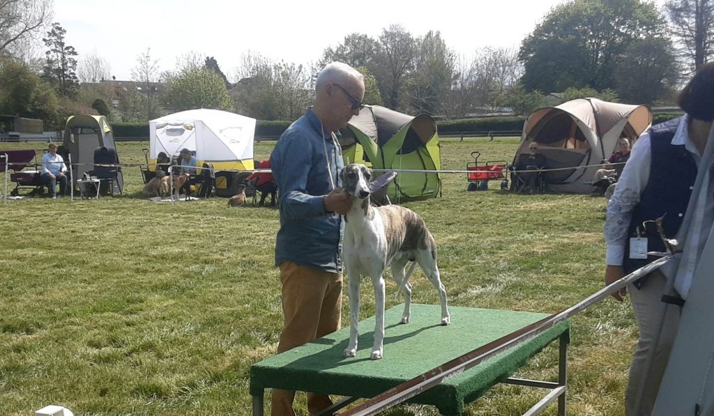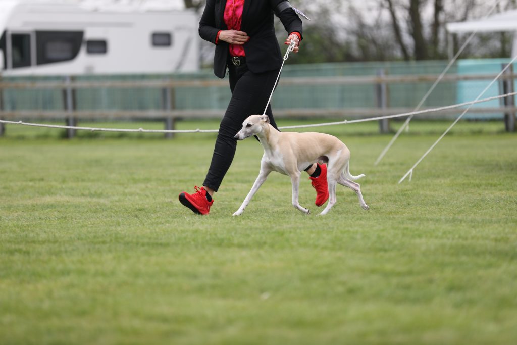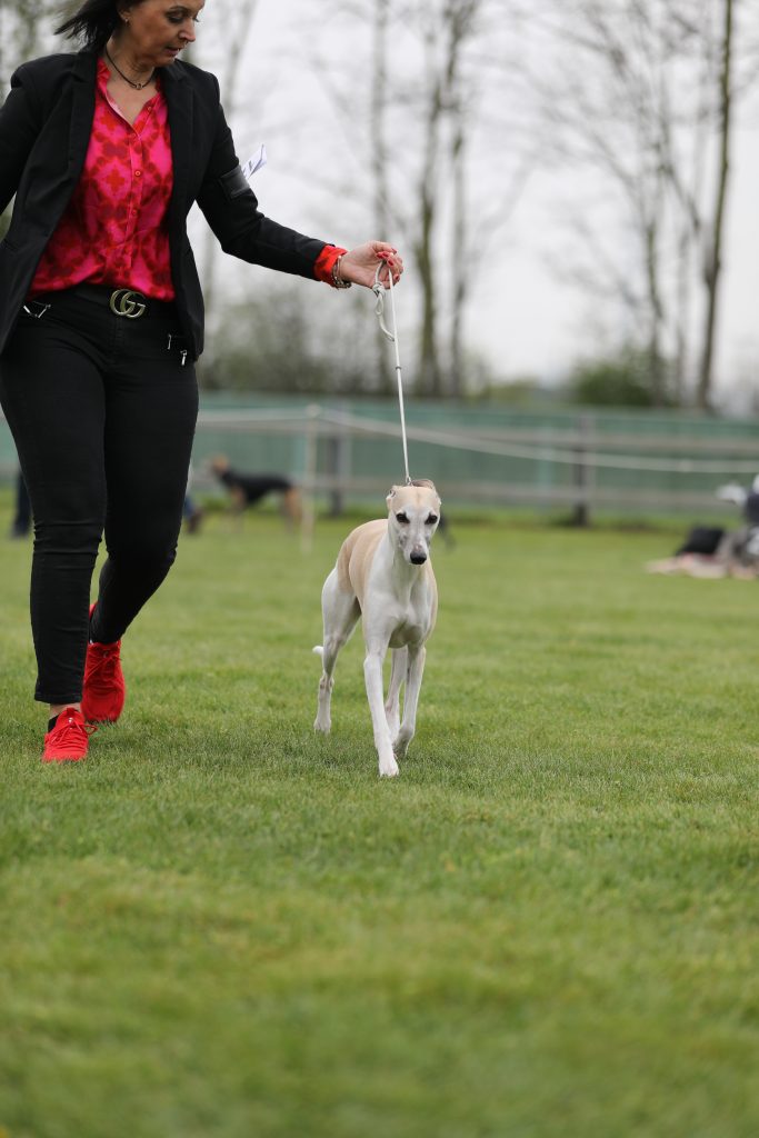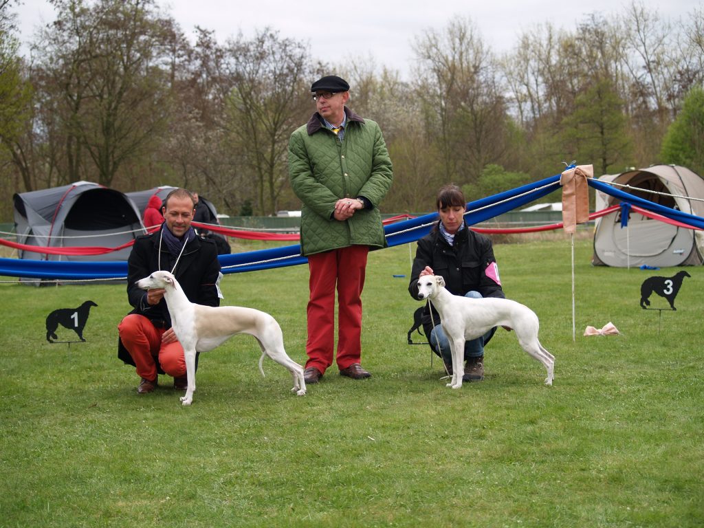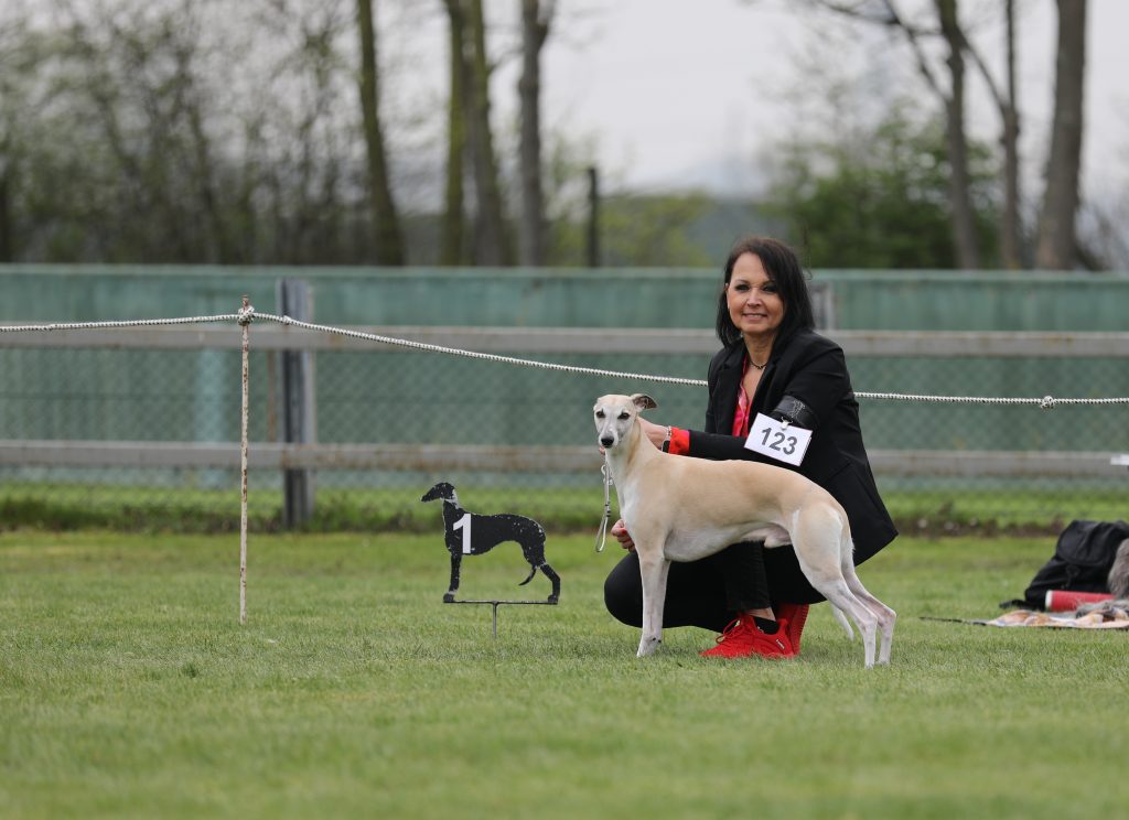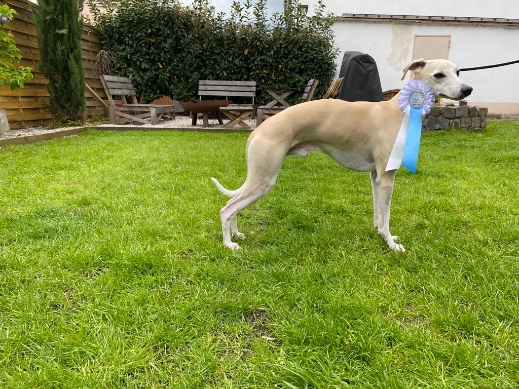 Gestern fand in Darmstadt eine CAC-Ausstellung statt, auf der Frau Marpe/D die gemeldeten Whippets bewertete. Ganz so viel wie letztes Wochenende war nicht los, aber vielleicht war es ganz gut, denn Loki, On the Bright Side semper-crescendo, hatte sein Show-Debut. So brauchte Jenni nicht ganz so dolle nervös sein- aufregend genug war es allemal 😉