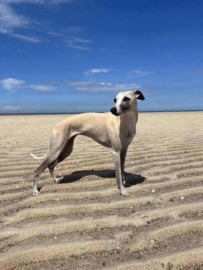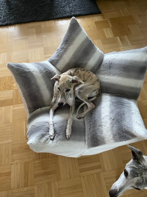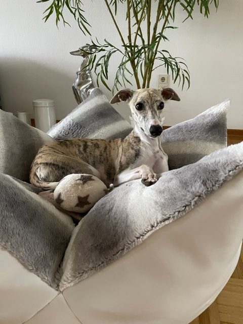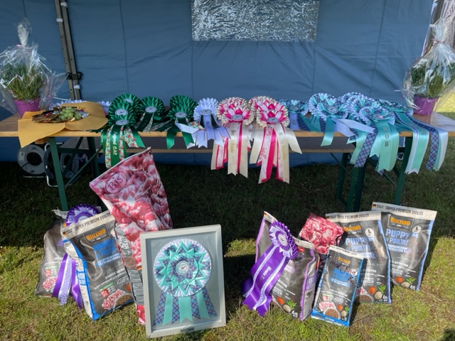 Wie gewohnt, gab es hochwertige Schleifen und Pokale (die auf diesem Bild noch nicht dekoriert sind). Besonders schön und außergewöhnlich war aber der BIS-Preis, der mich sehr beeindruckte und den am Ende des Tages ein Whippet erhielt 🙂