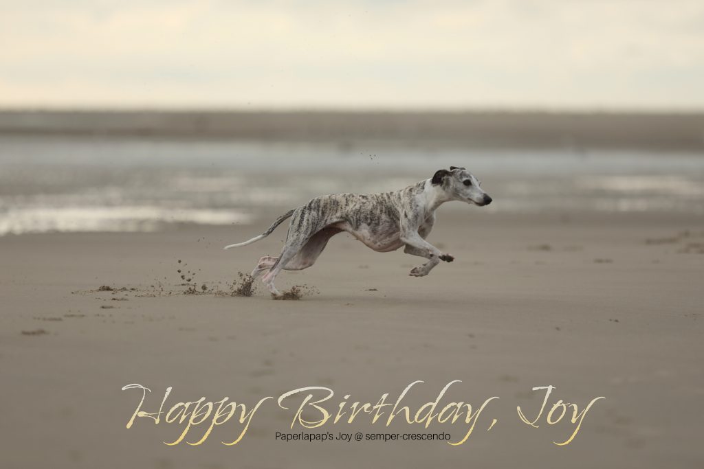 Ihren 7. Geburtstag feiert Joy heute schon. Sie ist eine tolle Hündin (nicht nur optisch), die unser Leben hier sehr bereichert. Mit ihr verbindet mich viel. Niemals werde ich z.B. die abenteuerliche Reise in die Schweiz vergessen, um Joy im Alter von 6 Wochen zu besuchen bzw. die Reise zurück. Ein plötzlich auftretender Schneesturm und ein gestrichener Rückflug forderte mich als Wenig- bis Gar-Nicht-Flieger ziemlich heraus…Im Nachgang kann man immer über solche Erlebnisse schmunzeln, in der Situation war ich „feddisch wie ein Brötchen“ und es bleibt eine „für-immer-Erinnerung“.