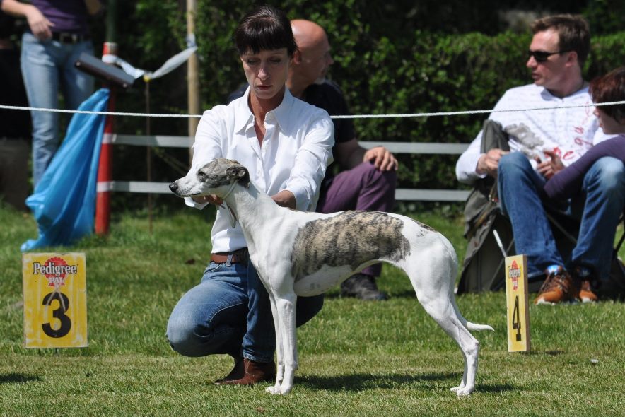In Hochdahl bei Solingen bewertete Herr Langer/D die Whippets. Mono, Conte del Aqua semper-crescendo, verließ bei ihm mit einem sg die offene Klasse der Rüden.