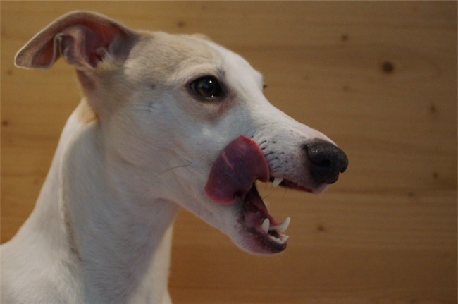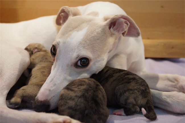 High Light semper-crescendo ist zweifelsfrei isabell-farben und ungestromt. Bis auf die weiße Schnippe an der Nase und weiße Zehen ist sie einfarbig. Ein Hingucker! – noch nie hatten wir einen Whippet in diesem hellen isabell-Ton.