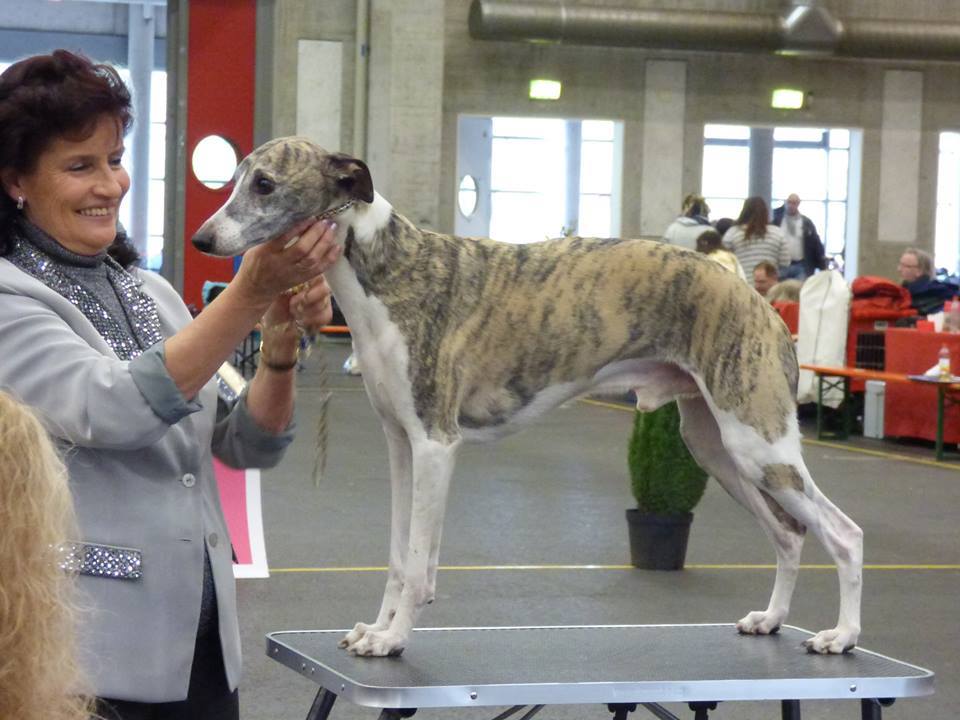 Eigentlich hätte Bayard, der Opa unserer jetzigen Welpen väterlicherseits (Papa von Dino), bereits im letzten Jahr in der Veteranen-Klasse ausgestellt werden können. Ruth fand das noch zu früh für ihn und begann erst nun ihn bei den Veteranen vorzuführen. Und das mega erfolgreich!