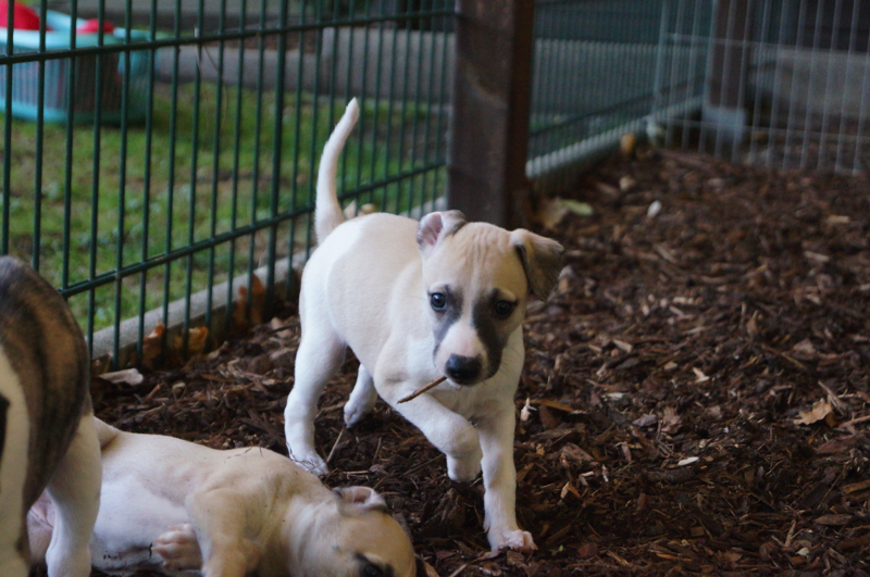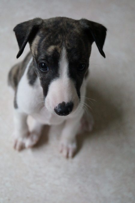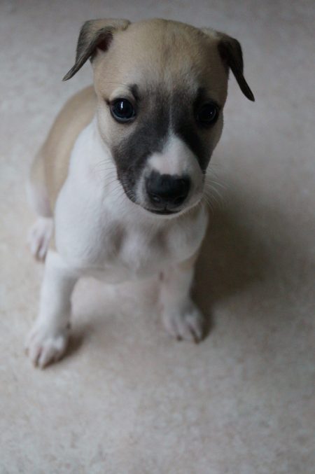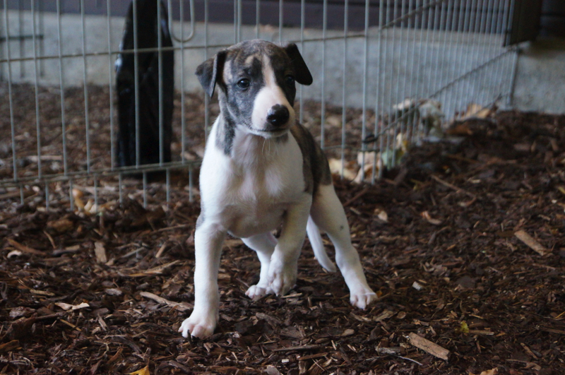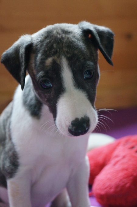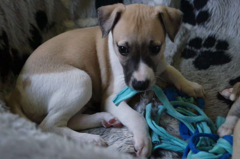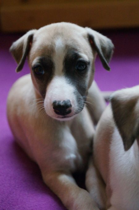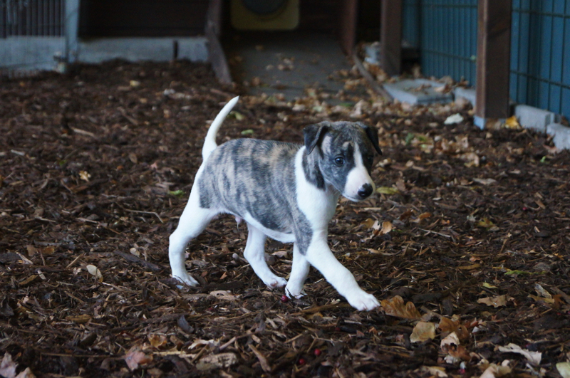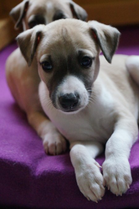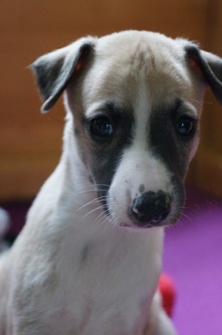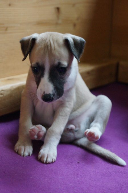 Key to Mystery semper-crescendo, Rüde sand mit etwas weniger weiß als sein Bruder und schmaler Blesse. Er hat schon einen kleinen Pigmentfleck auf der Nase!