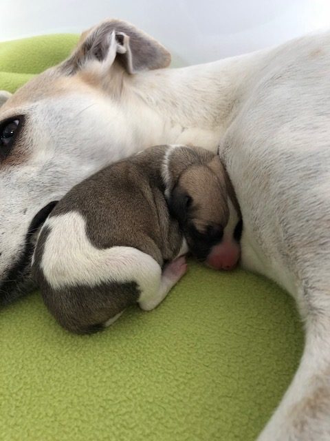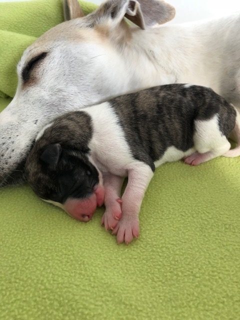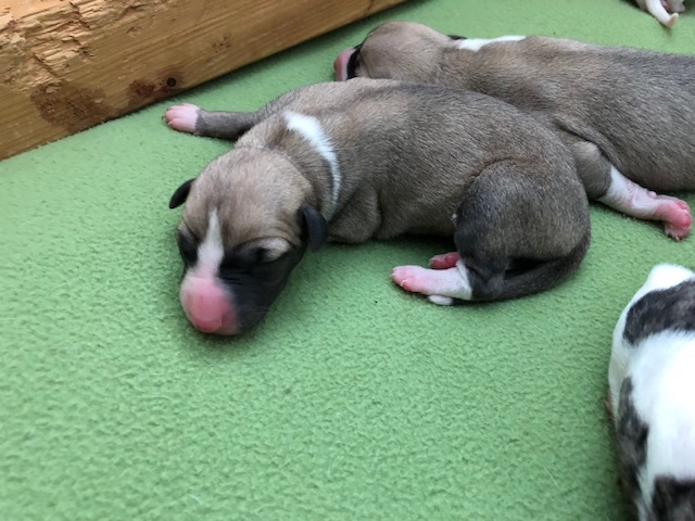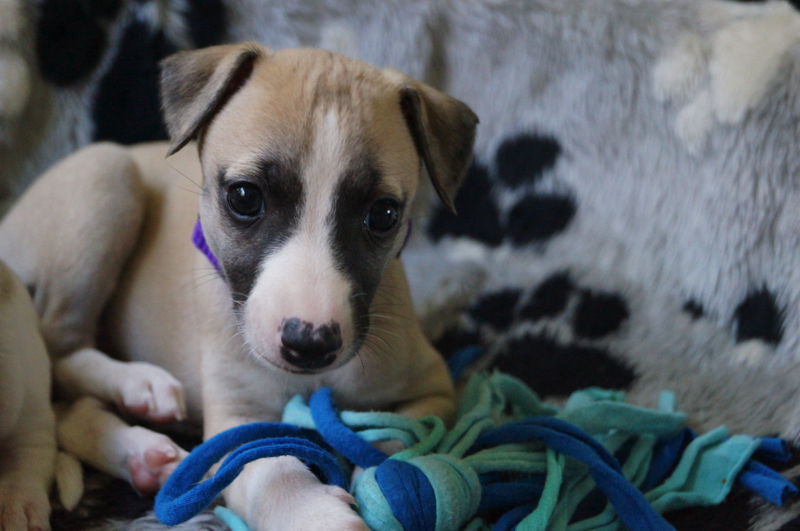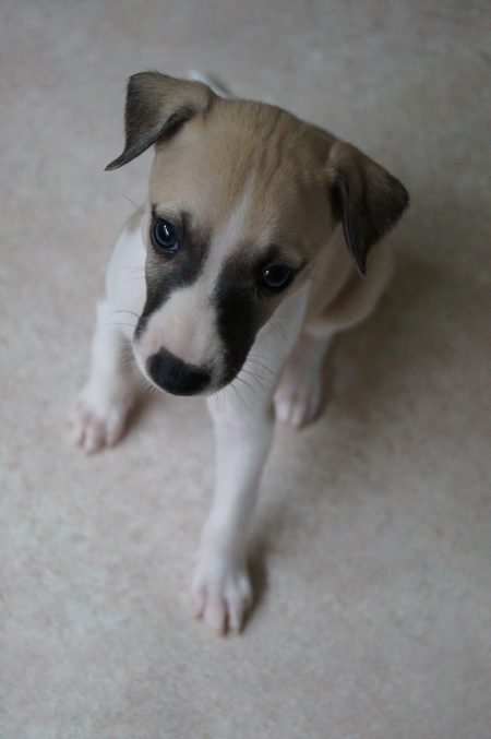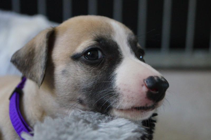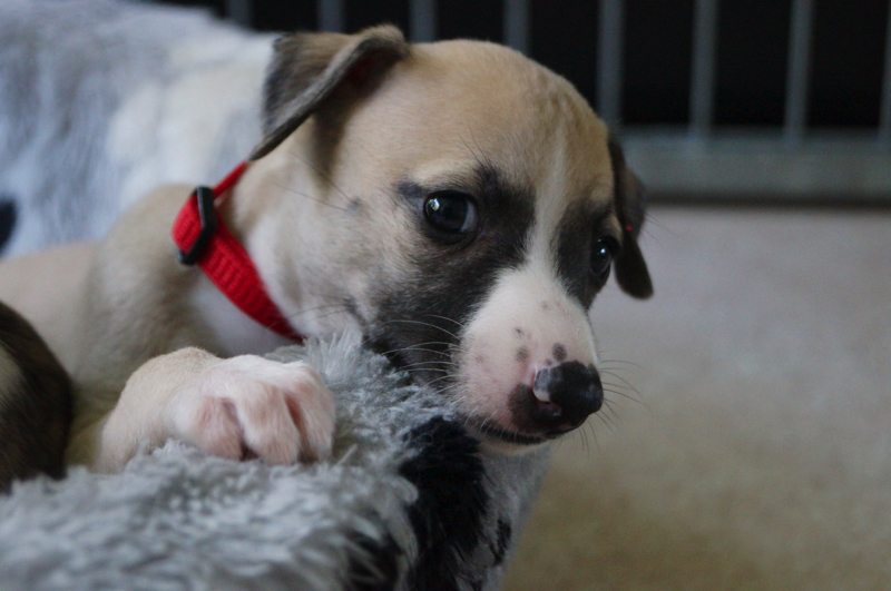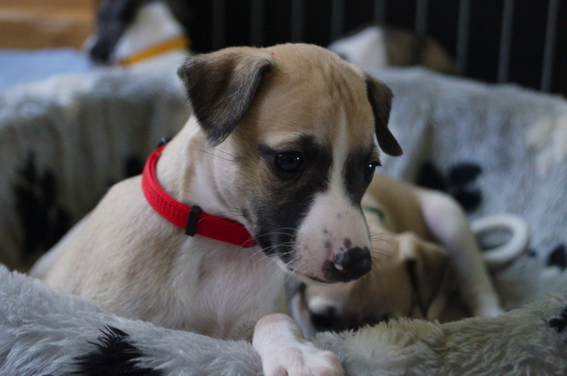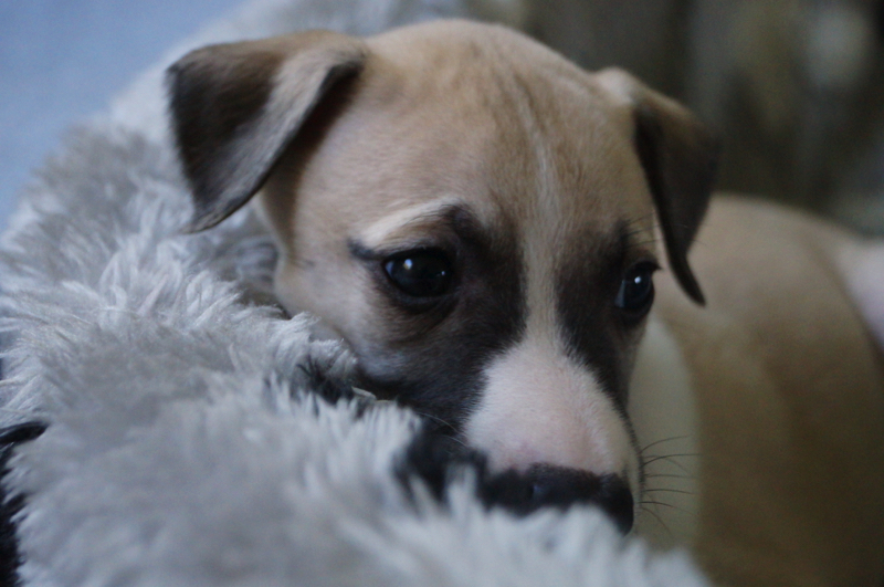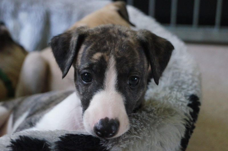 Key to Mystery semper-crescendo, Rüde sand mit etwas weniger weiß als sein Bruder und schmaler Blesse. Er hat schon einen kleinen Pigmentfleck auf der Nase!