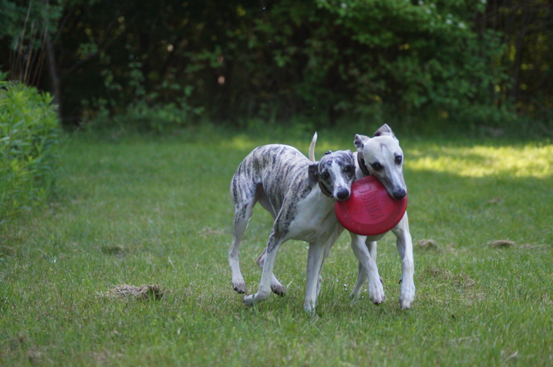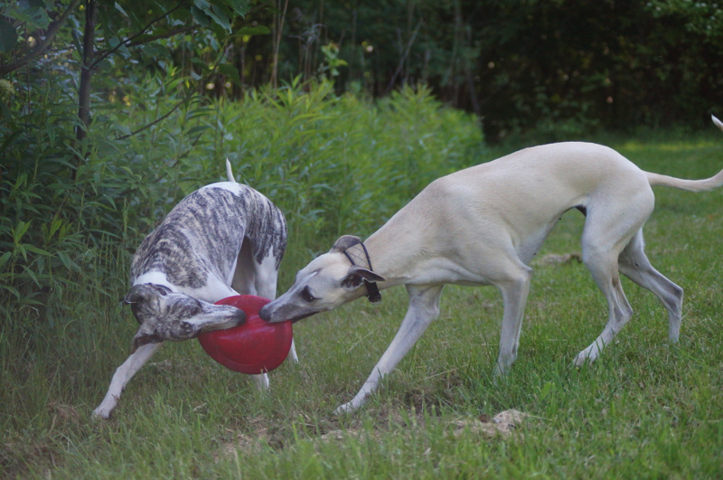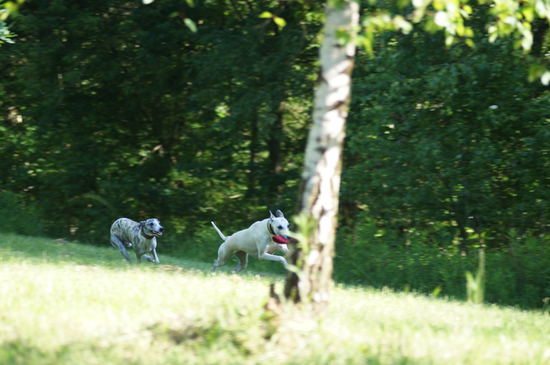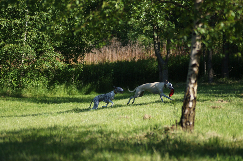 Juli und Joy. Immer zusammen. Ob unterwegs oder hier Zuhause. Die Chancen für Joy, auch mal das Frisbee zu bekommen, erhöhen sich von Woche zu Woche. Ganz schön schnell und wendig ist sie geworden, die Zwergnase!