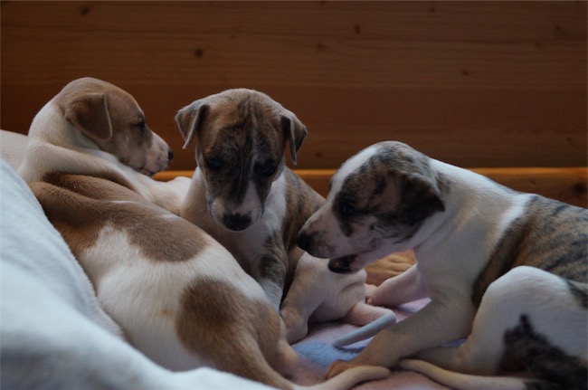 Puhhh, der Tag heute hat ganz schön an den Nerven gezerrt. Jetzt lässt die Anspannung langsam nach und ich habe mich mit der Kamera ein bisschen zu den Welpen gesetzt. Leider war es schon wieder viel zu dunkel…