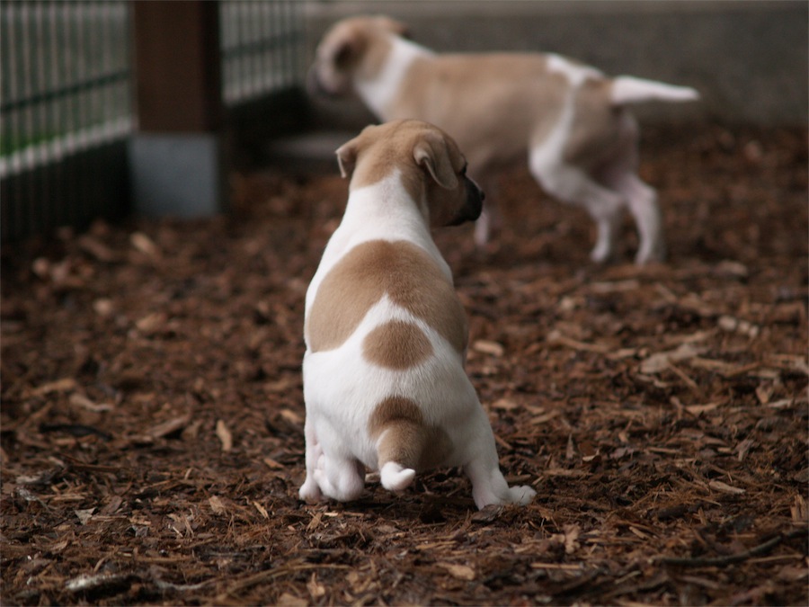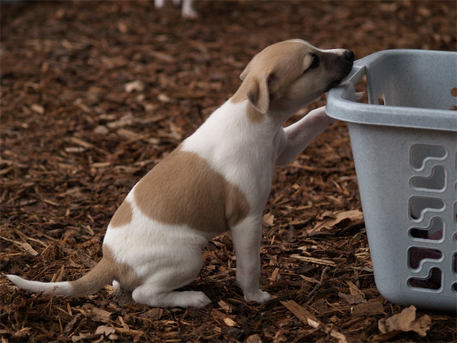 Die Entwicklung der Welpen geht ja rasant voran, die Gesichter, wie der ganze Körper werden länger. Die Ruten scheint man auch schon mit mehr Kontrolle bewegen zu können und nicht nur als angeborene Balancierstange.