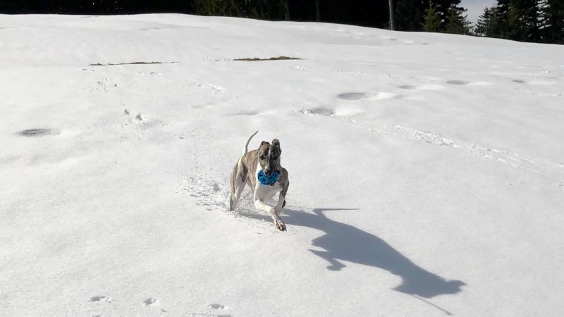 Immer wieder schießt Peter atemberaubende Fotos seiner Hunde vor einer traumhaften schweizer Kulisse. Wandern zwischen Frühling und Winter: