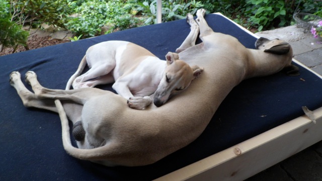 Dass unsere Whippets Kuschel-weich-miteinander-übereinander-Lieger sind, steht außer Frage. Filomeno, First Choice semper-crescendo, macht da keine Ausnahme und hat es sich bei seinem Sloughi-Kumpel El Hamar gemütlich gemacht.