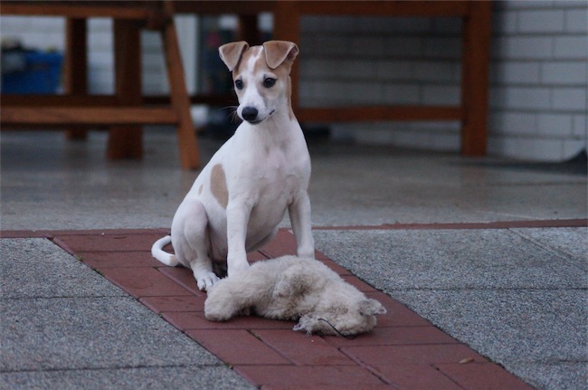 Nelly mit dem erlegten Teddy