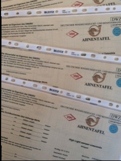 Für unsere lieben H- Menschen Veröffentlicht am 23. März 2015 von admin Es hat zwar länger gedauert als üblich, aber nun sind sie endlich da, die Ahnentafeln. Ihr bekommt also in den kommenden Tagen Post von uns. Viele Grüße an Euch und die Zwergnasen!!!