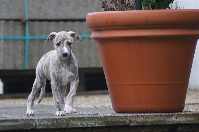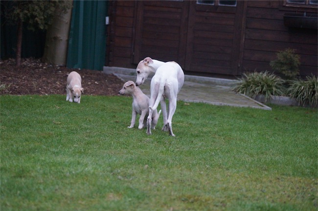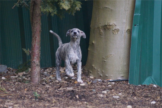 Finchen friert. Zeit, wieder ins warme Welpenhaus zu gehen und zu kuscheln!