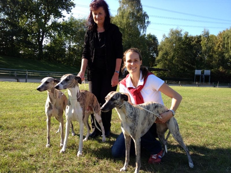 Last but not least starteten die beiden Halbschwestern Gina und Bijou, Donna Lavinia semper-crescendo und Belle Amie semper-crescendo, gemeinsam in der offenen Klasse der Hündinnen. Ebenso hier gab es ein Debut. Michi führte mit großer Gelassenheit Gina vor und wurde mit einem V4 belohnt. Bijou verblieb mit V unplatziert.