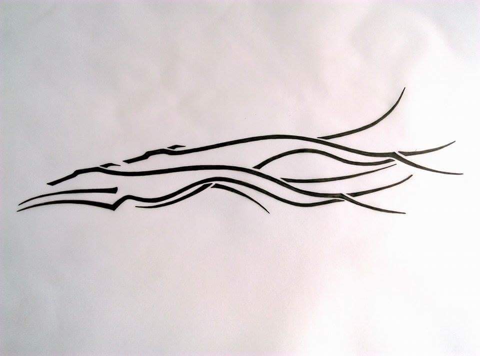 Ich wollte ein Design aus schlichten fließenden Linien, die sich über das gesamte Wohnmobil ziehen. Am besten natürlich angedeutete Windhunde.