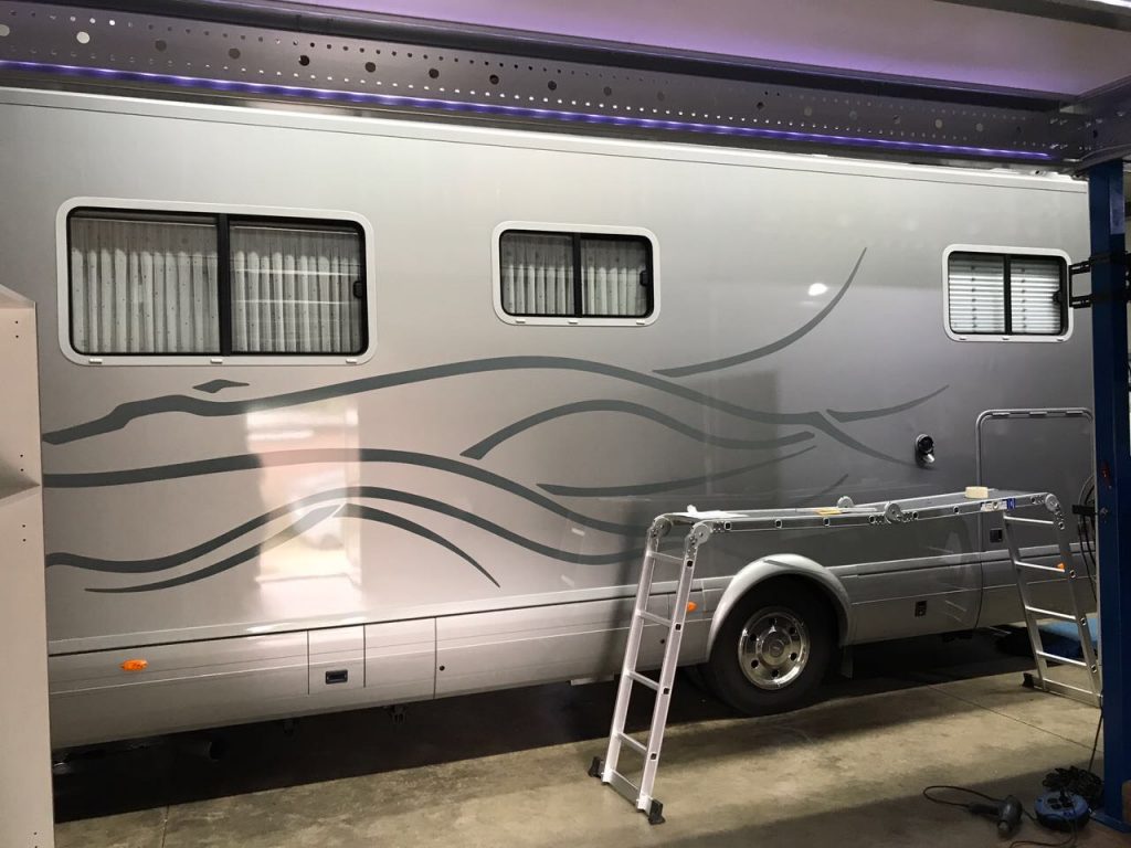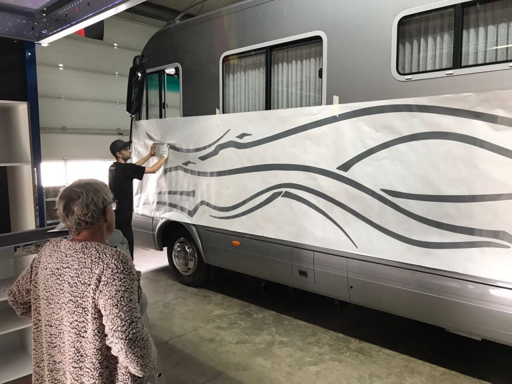 Ich hatte einen Traum und eine Idee: Nämlich ein neues Design für unser Wohnmobil, das nach dem Unfall im letzten Jahr ja „nackt“ daher kam.