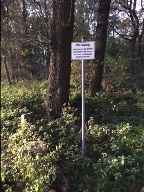 „Warnung- Unbefugten ist das Betreten der Haldenanlage wegen der damit verbundenen Gefahren verboten“.