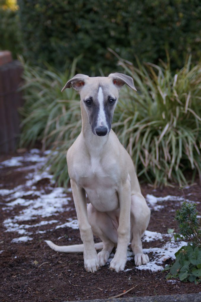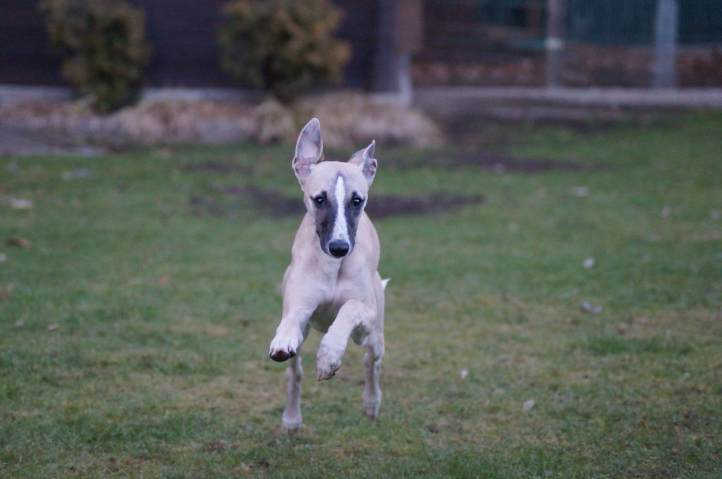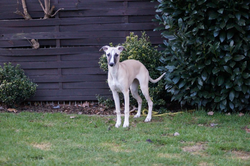 Auch Juli, Jewel Quest semper-crescendo, konnte ich im Garten mit der Kamera erwischen. Sie entwickelt sich langsam vom Welpen zu einer hübschen Junghündin.