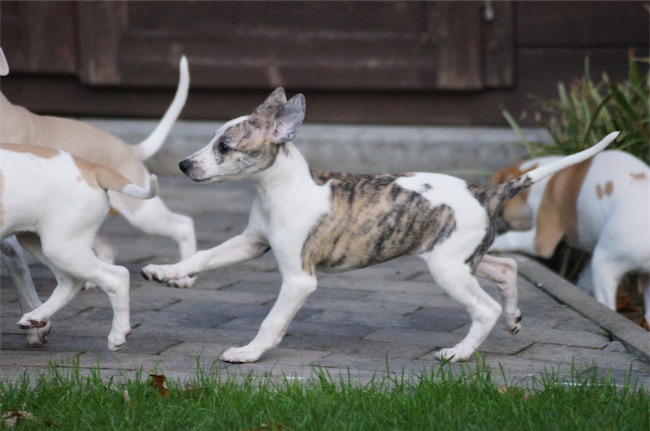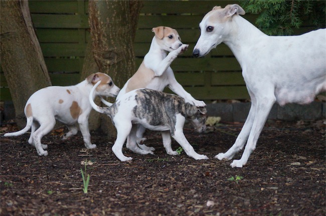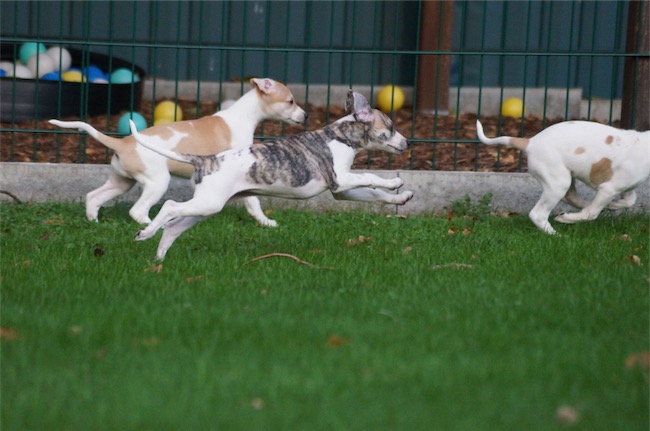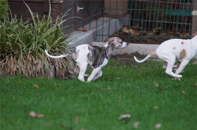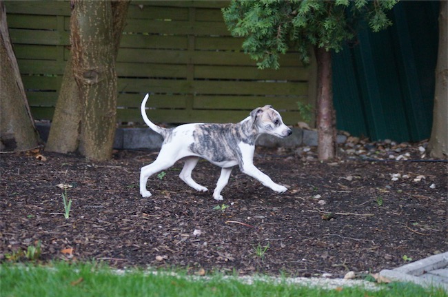 Endlich. Es regnet nicht wie aus Kannen! Auch wenn unsere Wiese eher einem Matsche-Tümpel gleicht, habe ich die Welpen den Garten erkunden lassen. Sie hatten sichtlich Spaß.