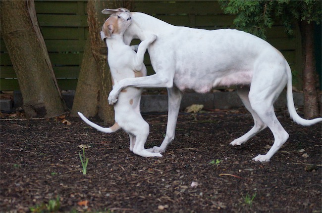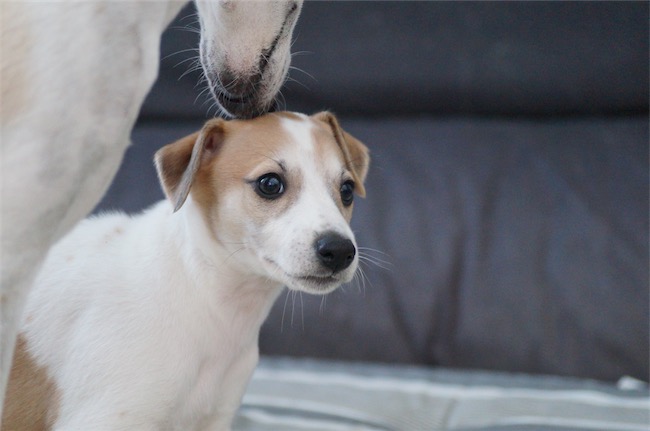 Ganz schön respektlos! Aber Eve weiß, wie Welpenerziehung geht.