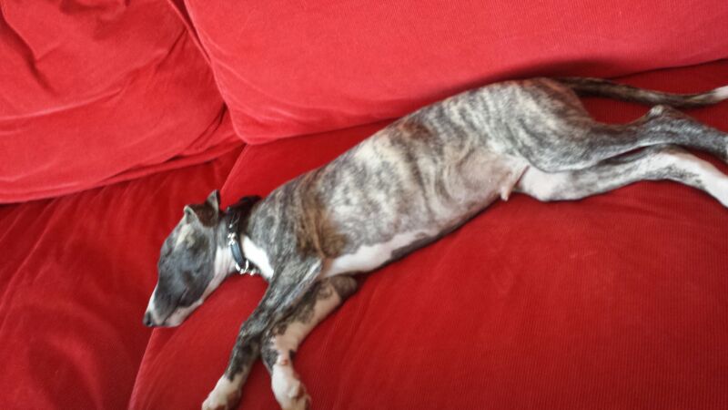 Codi hat Zuhause innerhalb weniger Minuten entdeckt, dass es sich auf dem Sofa recht gut bettet 😉