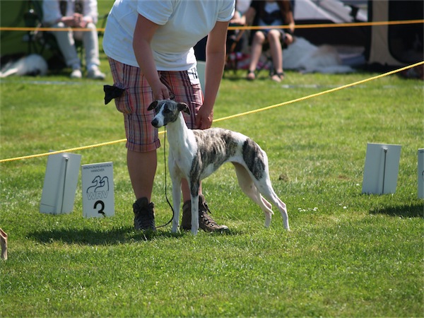 Herr Henne/D war nach Hannover eingeladen die Whippets auf der LS-Ausstellung heute zu bewerten. 60 gemeldete Hunde verhießen für uns eine lange, lange Wartezeit, die wir aber mit quatschen in großer, entspannter Runde locker rumbekommen haben.