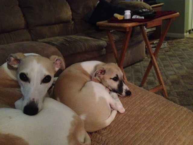 Aus Amerika kommen diese Bilder von First Class semper-crescendo, Classie. Sie hat sich dort schon hervorragend eingelebt, spielt, schaut fern und hat einen neuen großen Freund gefunden. 🙂