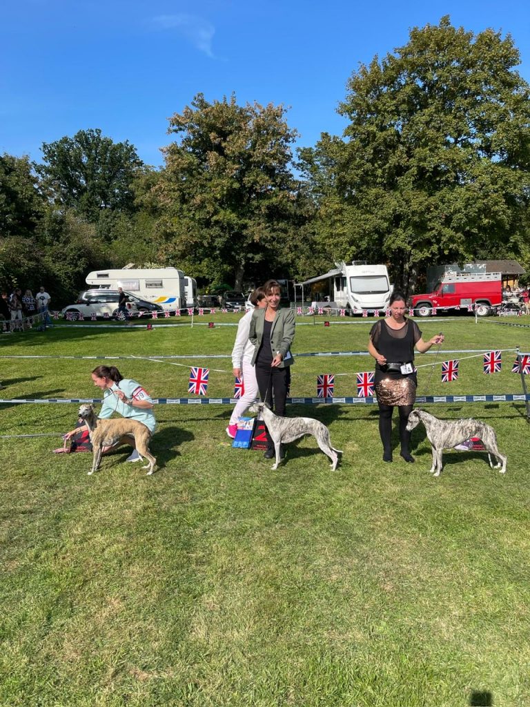 In diesem Jahr fand die Whippet Jahressiegerausstellung bei kaiserlichem Spätsommerwetter in Hildesheim statt. 105 Hunde aus Deutschland, Belgien und den Niederlanden waren für die zwei Richterinnen gemeldet. 55 Hündinnen für die Rassespezialistin Frau Andrea Herrmann/D und 50 Rüden für die ebenfalls als Rassespezialistin für Greyhounds und Whippets aus England angereiste Frau Clare Boggia/GB.