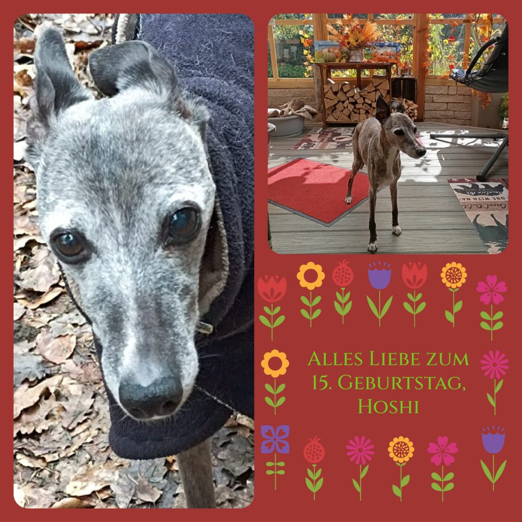 Wir freuen uns sehr, diesen Eintrag einstellen zu dürfen. Hoshi feiert heute bei recht guter Gesundheit ihren 15. Geburtstag!. Michaela und Jürgen haben für die Feier schon einiges vorbereitet, wie sie bereits erzählt haben. So kann ja nichts mehr schief gehen und Hoshi wird ihren besonderen Tag mit ihren Menschen und ihrem Rudel bei Sonnenschein genießen können.