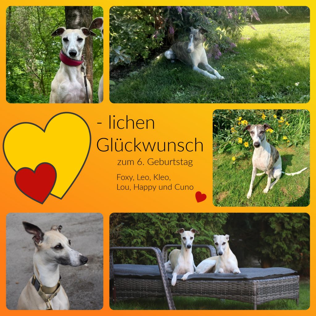 Natürlich wünschen wir diesem schönen 6-Pack alles, alles Liebe und Gute zu seinem Ehrentag und hoffen, dass alle das kommende Lebensjahr mit vielen Abenteuern und Gesundheit genießen können. Ganz besonders sei hier Lou erwähnt, die leider im vergangenen Jahr eine OP hinter sich bringen musste- Gott sei Dank mit einem guten Ergebnis!