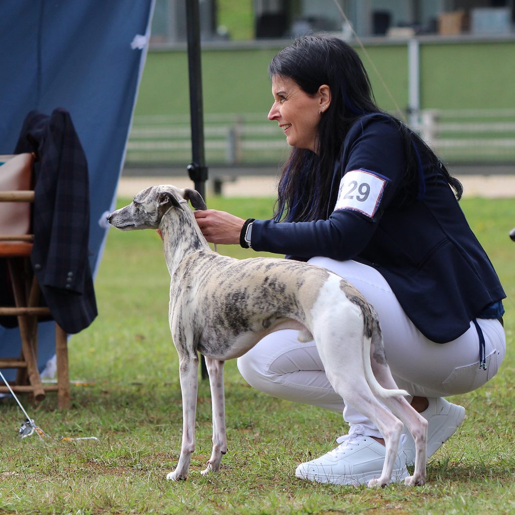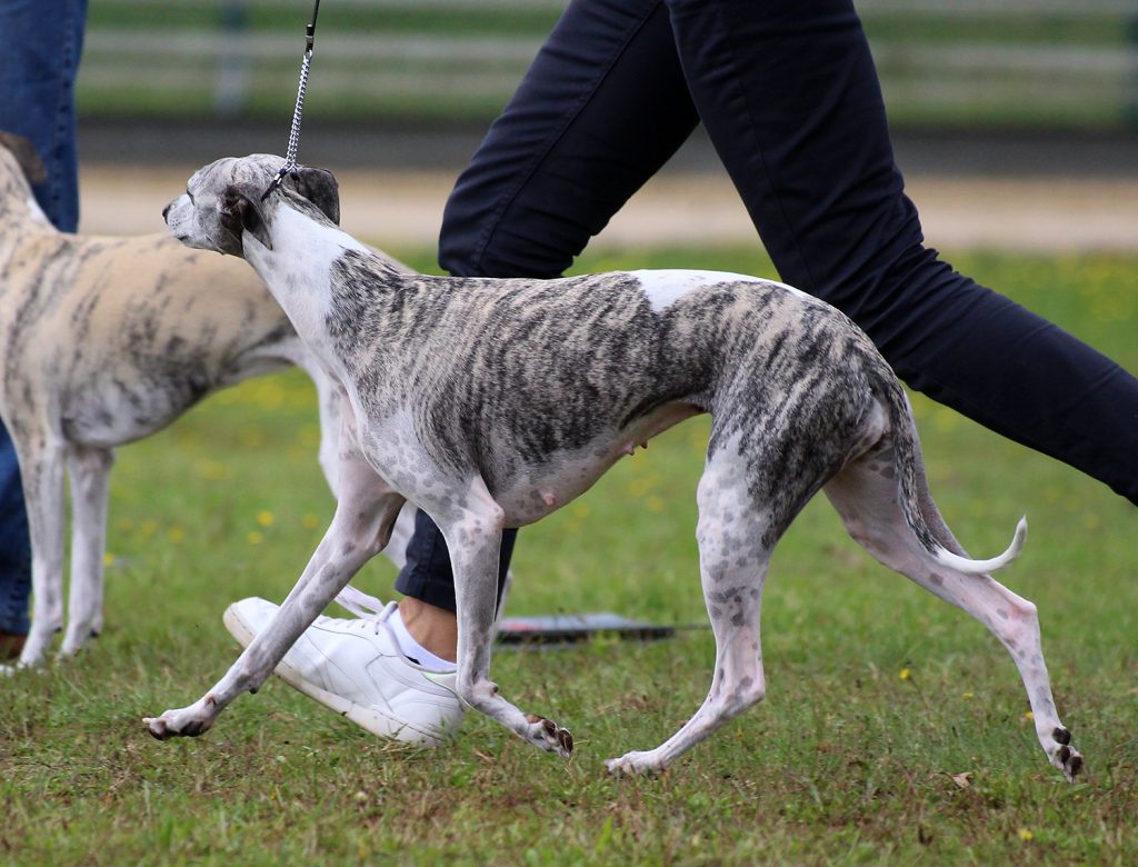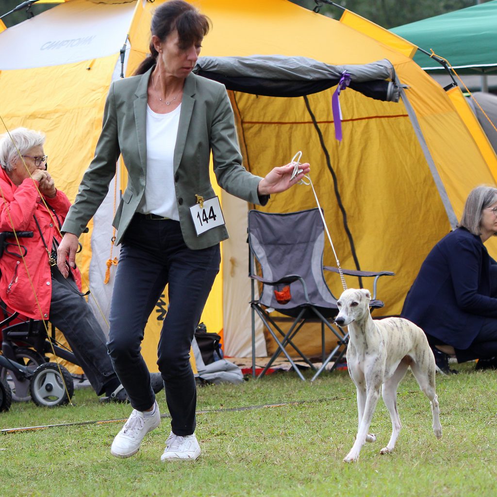 Der Verein hatte Frau Wagner/Lux für die Whippets eingeladen. Sie richtete zügig, war super freundlich, legte aber ihr Augenmerk vor allem auf das Gangwerk. So hieß es für alle: laufen, laufen, laufen. Dazu aber später mehr. Erst einmal warten. Brrr…war ganz schön kalt..