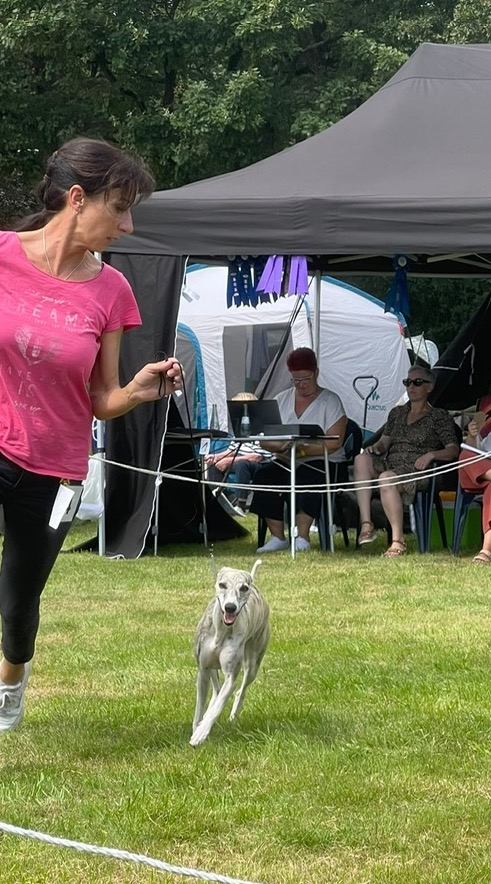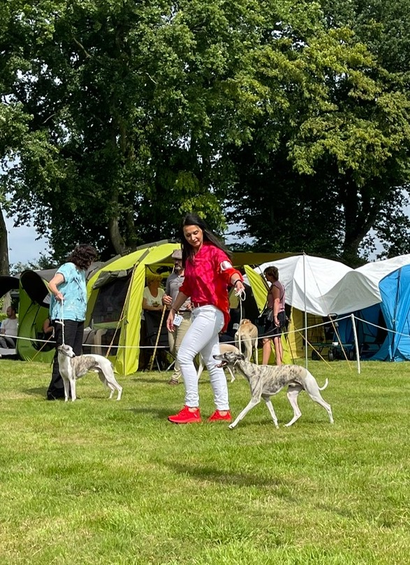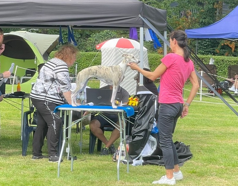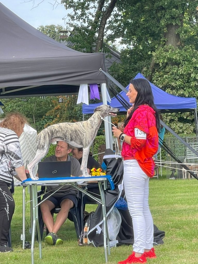 Gestern hatte ich ein paar Stunden „welpenfrei“ und ich bin mit Sandra, Nuri und Queenie nach Erkrath zur CAC-Ausstellung gefahren. Für die Whippets war Frau Rasma Ergle/LV eingeladen. Sie richtete emotionsfrei und zügig, so dass wir nicht allzu lange auf dem Platz ausharren mussten. Es war nämlich ganz schön warm und schwül.