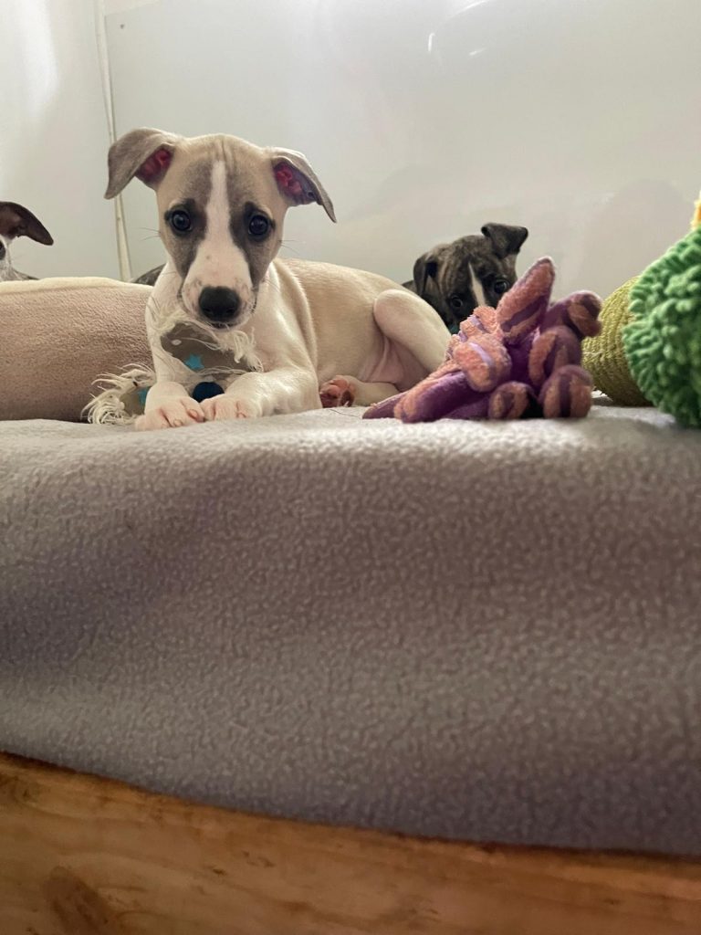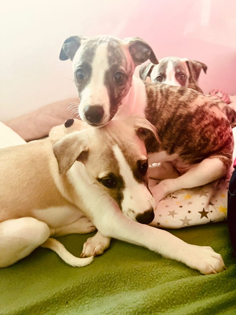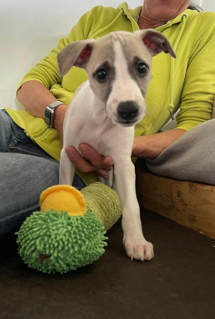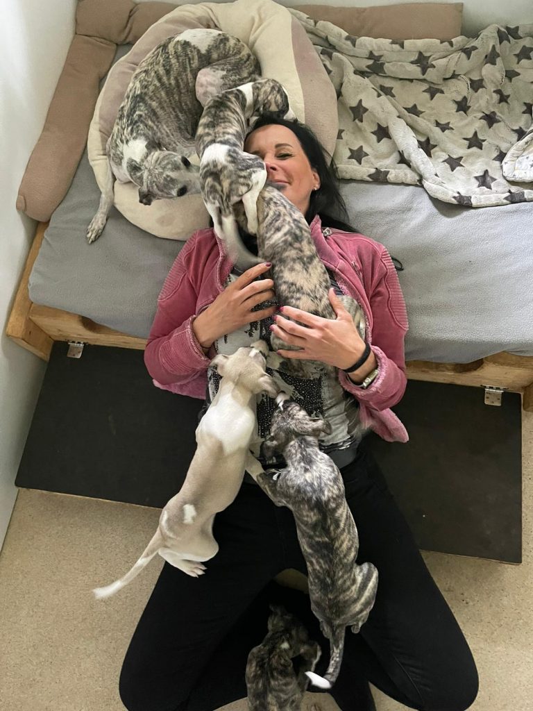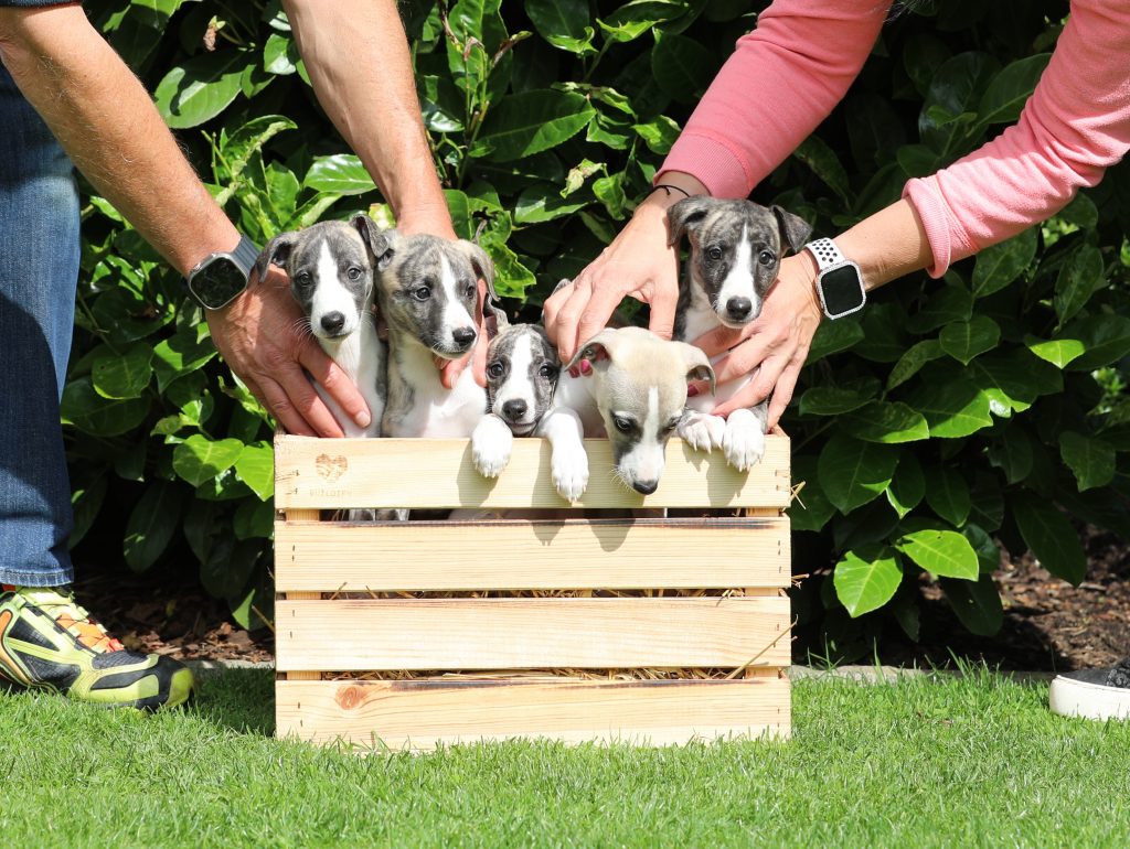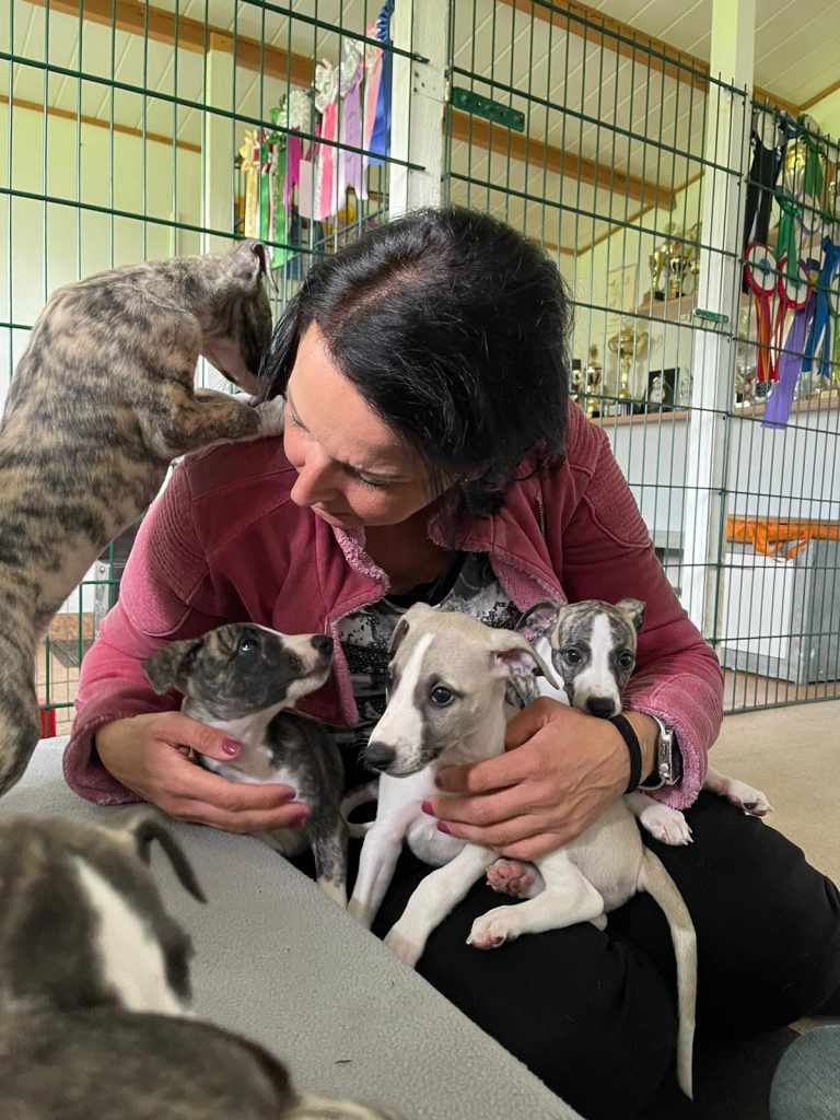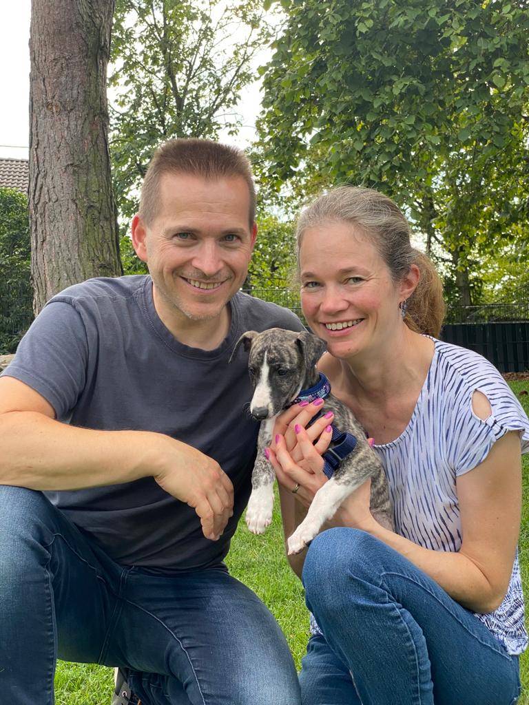 Tränen der Freude, den kleinen Schatz nach den vielen Wochen des Wartens endlich abholen zu dürfen, Tränen der Rührung und Tränen des Abschieds mischen sich. Sky, Passion for Stars semper-crescendo, ist am Sonntag in sein neues Zuhause gezogen. Tina, Sascha und auch Whippet Jimmy freuen sich über ihn und das gemeinsame zukünftige Leben mit ihm.