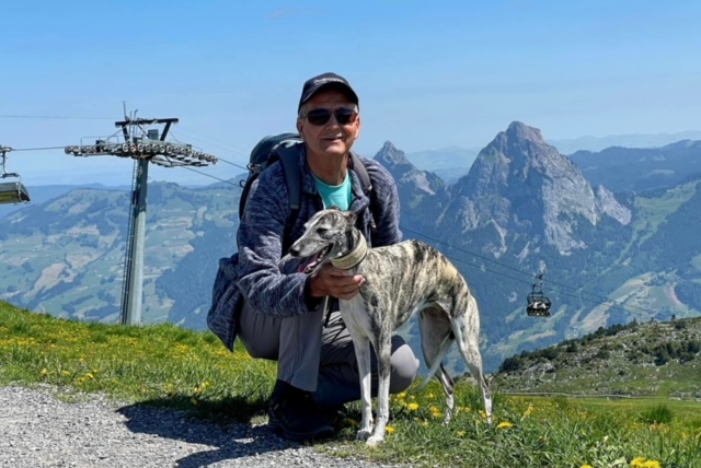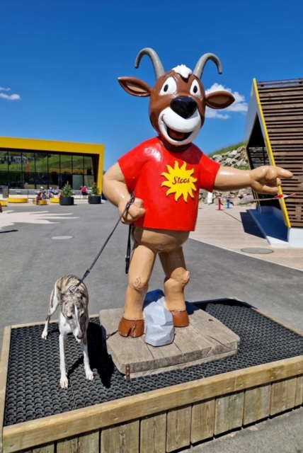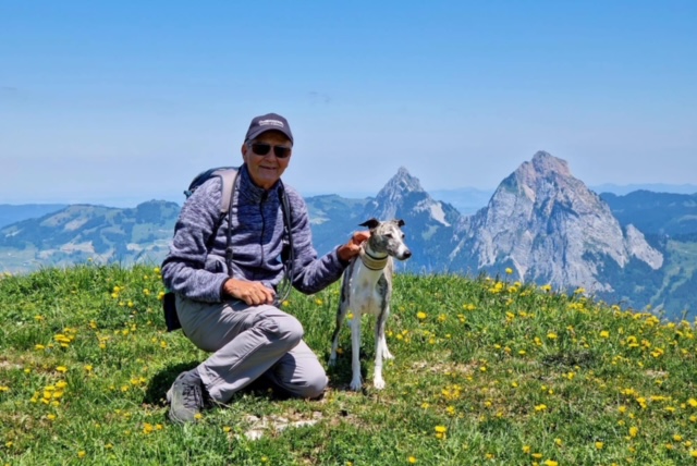 Enya, Grande Galassia semper-crescendo an der Talstation der Bergbahn, die Peter sonst nicht so häufig benutzt. Keine Sorge, er hat Enya wieder mitgenommen 😉Peter und Enya vor grandioser Aussicht