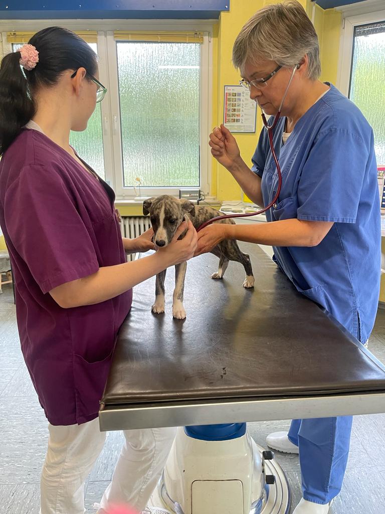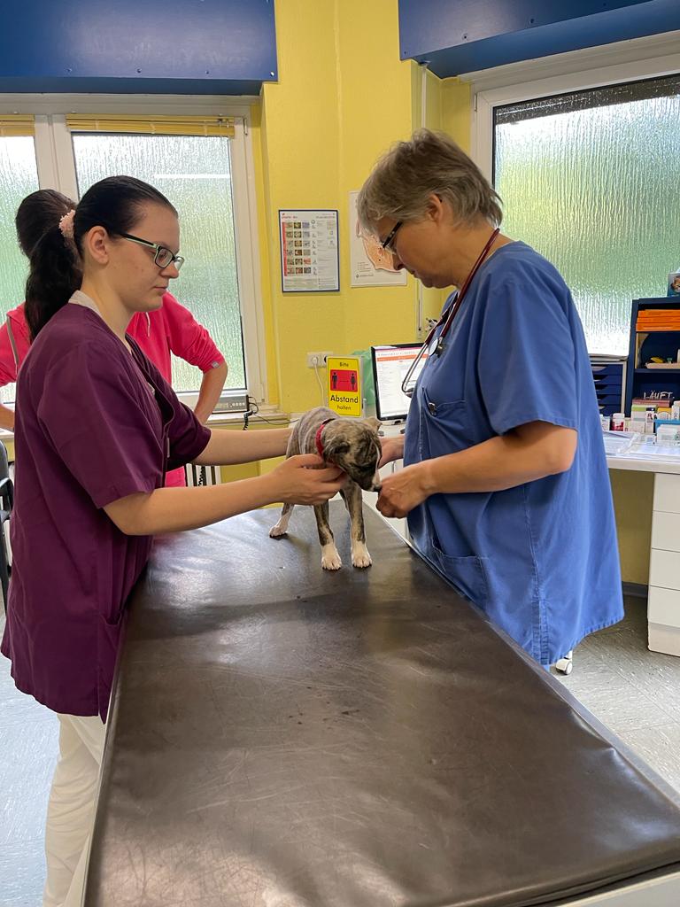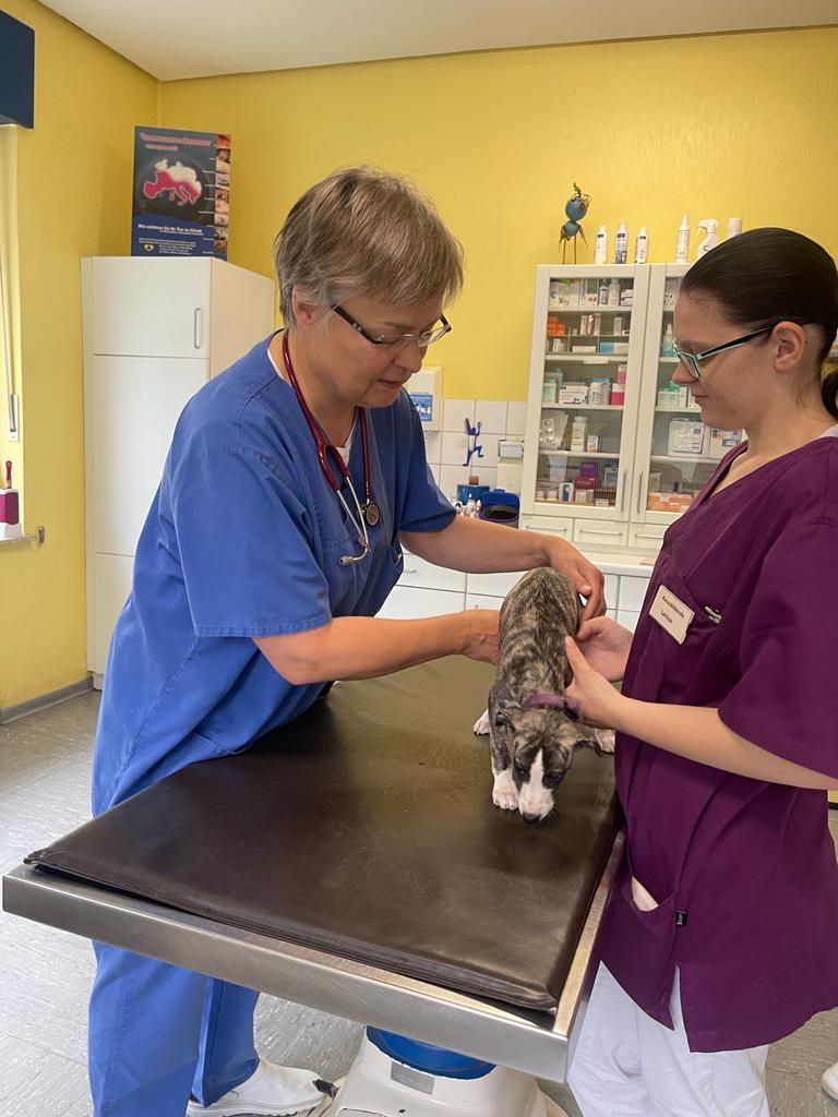 Das war gestern aufregend für die Welpen. Früh am Morgen schon hatten wir einen Termin beim Tierarzt zum chippen und impfen.