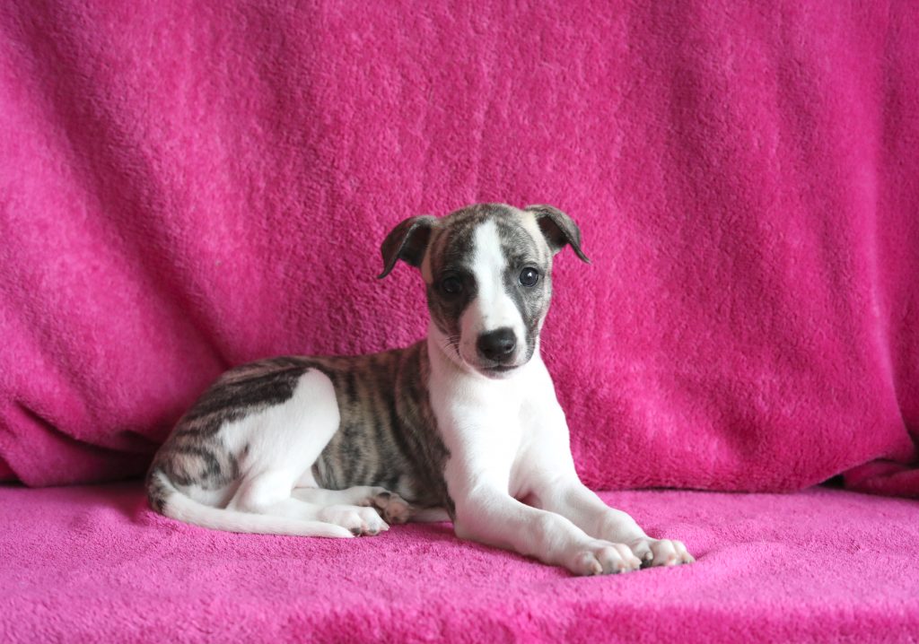 Passion for Kisses semper-crescendo- Smilla. Dieses kleine Streifentier hat auch die Gabe, den Menschen direkt ins Herz zu schauen und so war es auch für Luisa und Sebastian nicht schwer, JA, zu ihr zu sagen. Lotta, More than Luck semper-crescendo, freut sich sicherlich auch schon. Zu zweit ist es als Whippet ja doch irgendwie am schönsten.Passion for Pearls semper-crescendo- sie hat uns ins Herz geschaut und wird unsere Familie bzw. die Mädelsbande verstärken. Wir werden sie Penny rufen und freuen uns auf ein Leben mit ihr.