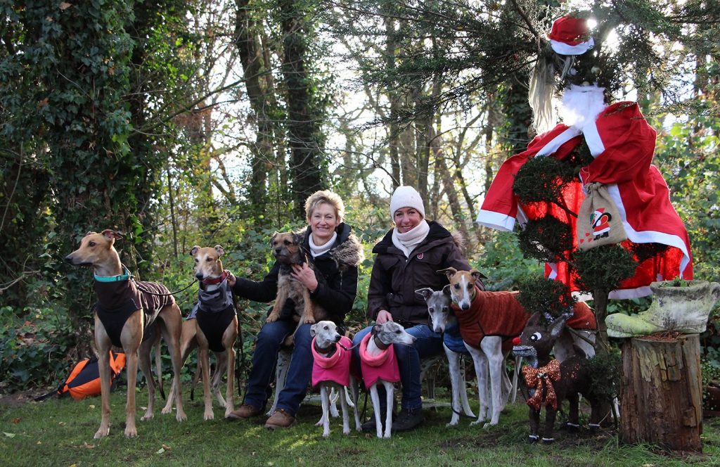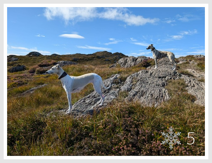 Und auch dieses Foto gibt Anlass, es heute zu zeigen. Aufgenommen bei unserer letzten Wanderung vor 2 Wochen. Ein netter Kleingartenbesitzer hat dieses selbstgemachte Arrangement für die Wanderer bereit gestellt. V.l.n.r. die Greyhounds von Barbara (Johnny und Nash), Claudia mit Siegfried auf dem Schoß, meine Wenigkeit mit Queenie und Penny als auch die Greyhounds von Claudia, Crispy und Chilly.