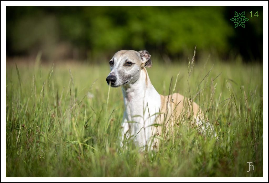 Fleur, Neon Snowflake semper-crescendo. Ein Multi-Purpose-Whippet. Nicht nur gern auf dem Agility-Parcours unterwegs, sondern auch Trick-Dog-Novice-Championesse