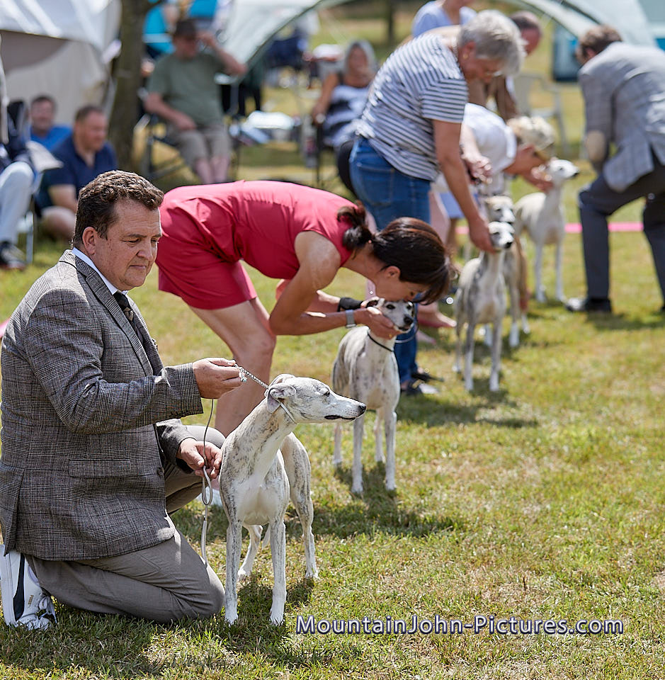 Passend zum gerade in der UW erschienenden Artikel über die Whippet-JAS heute ein Schnappschuss von www.MountainJohn-Pictures.com , der mich bei einer schönen Geste erwischt hat. Joy und ich in der Championklasse der Hündinnen.