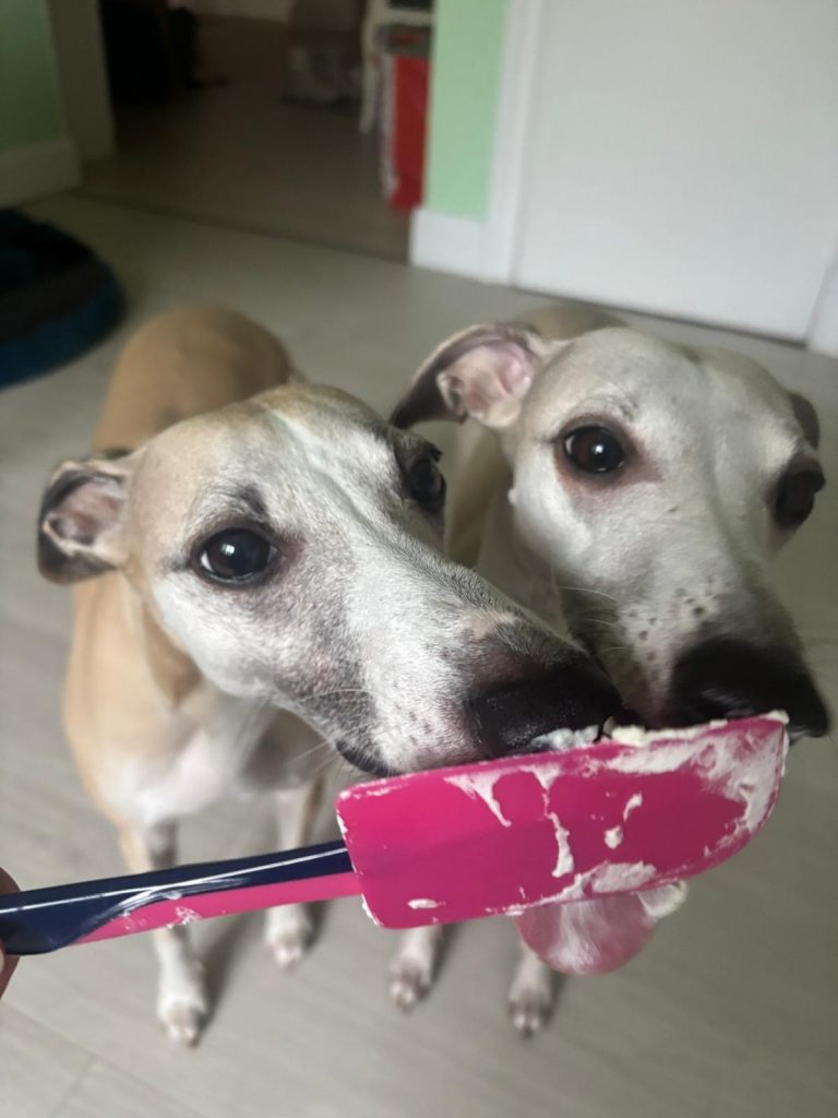 Wenn Magda Kuchen oder Plätzchen backt, kommt sie um eine Qualitätsprüfung des Teiges im Doppelpack nicht umher. In diesem Fall hat die Bäckerei-Fachaufsicht, namentlich Foxi und Sienna, den Teig für gut befunden. Er durfte in den Ofen zum fertig backen.