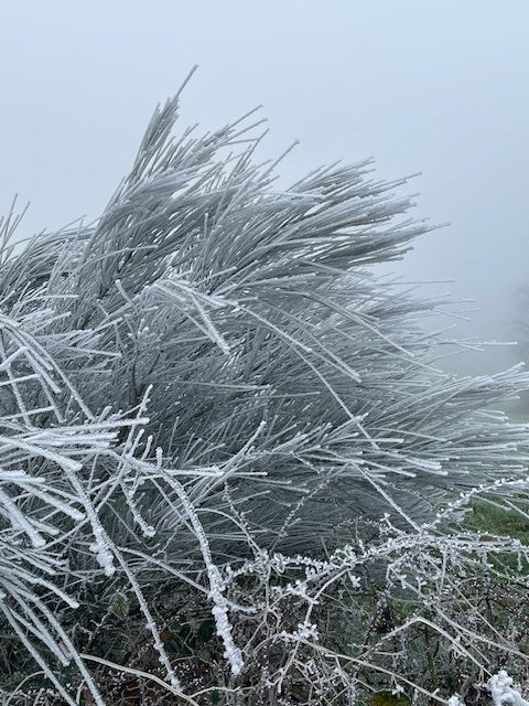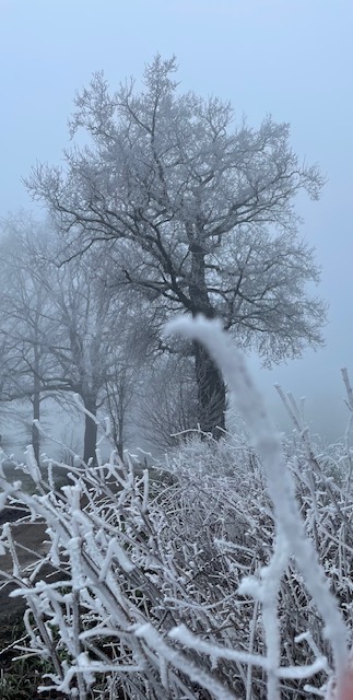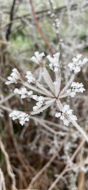 Während die einen im Sauerland bei strahlend blauen Himmel Ski fahren können, stecken die anderen (sprich wir) 100 km entfernt seit einigen Tagen bei minus 2 Grad im Dauernebel fest. Hier ist alles eingefroren, aber so manche Pflanze sieht im Detail wunderschön aus. Andere Perspektiven wirken nahezu mystisch.