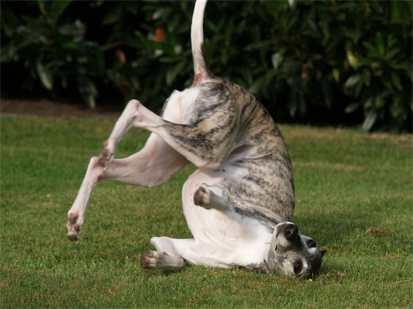 Ich habe Kissy beim rumkugeln auf der Wiese „erwischt“. Was auch immer dort lag, es schien so gut gerochen zu haben, dass es sich gelohnt hat, sich darin zu wälzen. So zumindest Kissy’s Meinung. Ich fand ihr ausgesuchtes Tages-Prafüm nicht ganz so klasse 😉