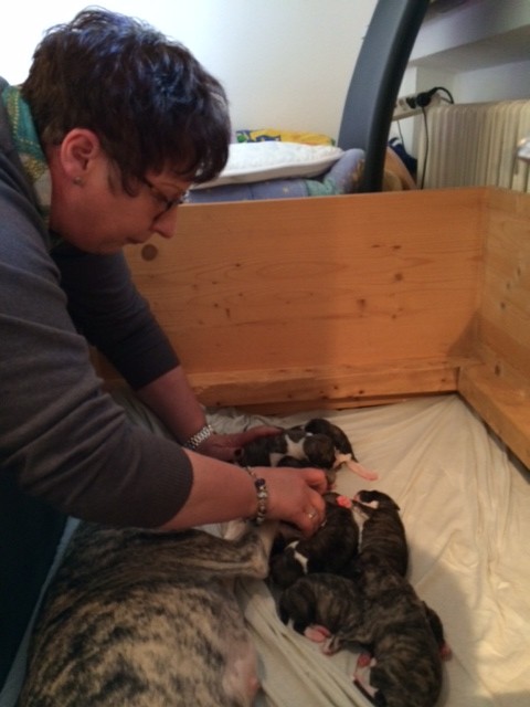 Durch ihre Hände sind sicherlich im Laufe der Jahrzehnte mehrere Hundert Welpen gegangen. Sei es durch ihre eigene Zuchttätigkeit oder als Zuchtwartin. Und was soll ich sagen? Es gibt hier nichts zu meckern. Alles dran, was soll; alle dick und rund, wie es sich für kleine Welpenmäuse gehört.