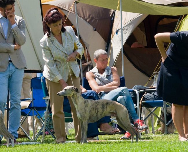 Dort richtete Frau Nely Bleijis-Pors/ NL die Whippets und offensichtlich mochte sie Vater und Sohn.
