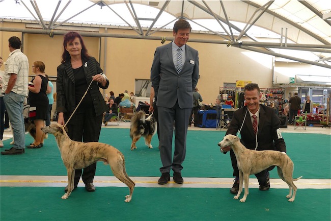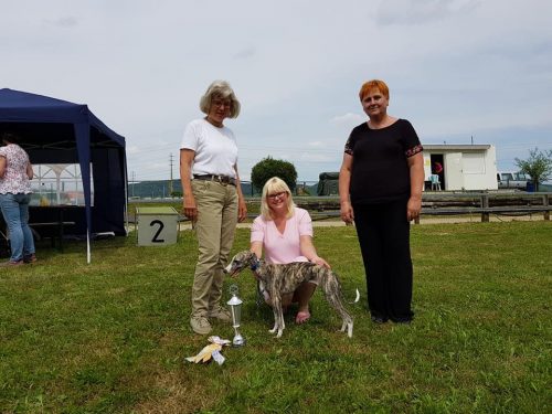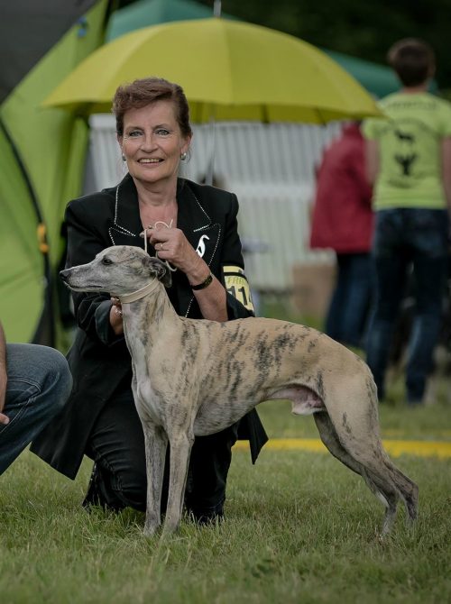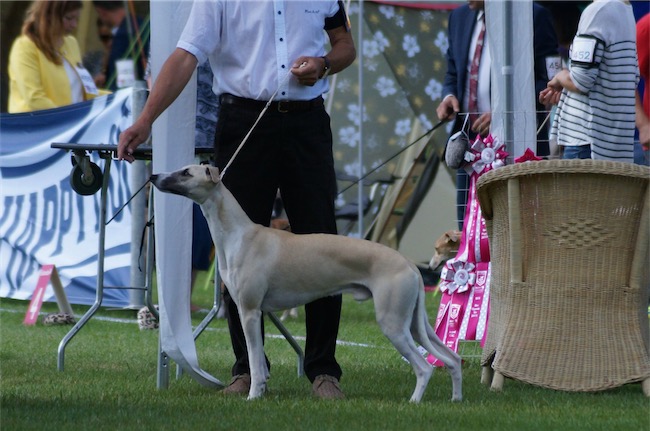 Heute fand im Rahmen der Summer-Trophy eine CAC-Ausstellung in Kleindötting/CH statt, zu der die Rassespezialistin Frau Dr. Bennemann/D eingeladen war, die Whippets zu bewerten.