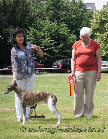 Auch heute starteten Vater und Sohn auf der CACIB in Genf. Dieses Mal bewertete Herr Kostopoulos/GR die Whippets.