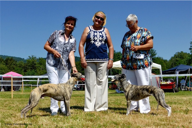 Heute fand im Rahmen der Summer-Trophy eine CAC-Ausstellung in Kleindötting/CH statt, zu der die Rassespezialistin Frau Dr. Bennemann/D eingeladen war, die Whippets zu bewerten.