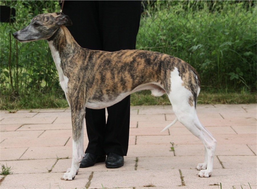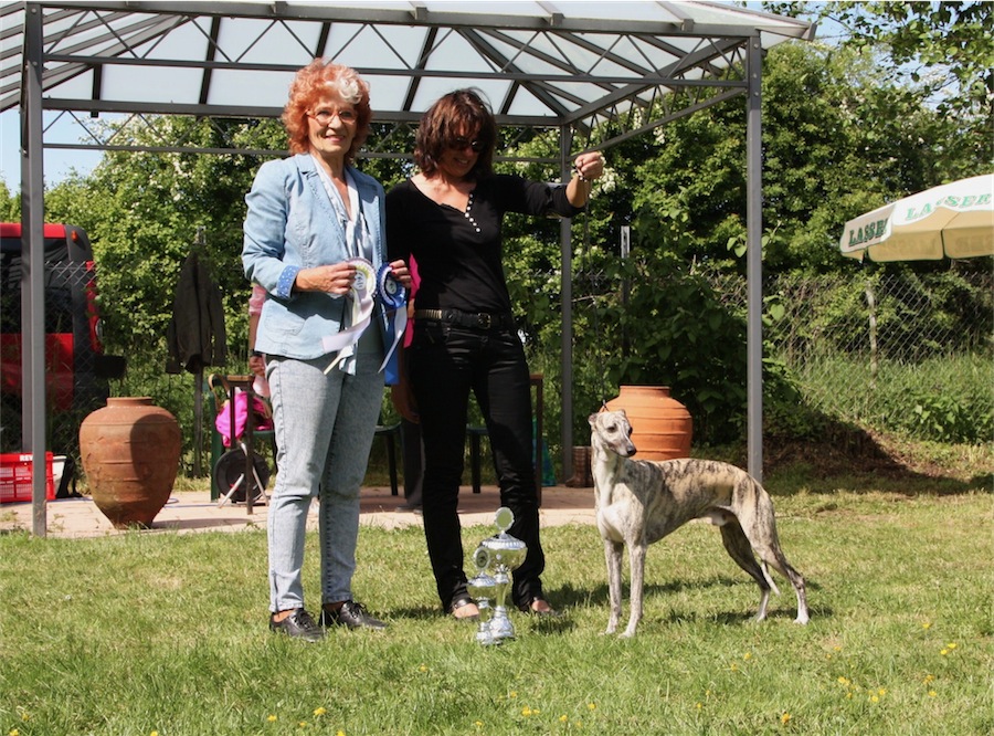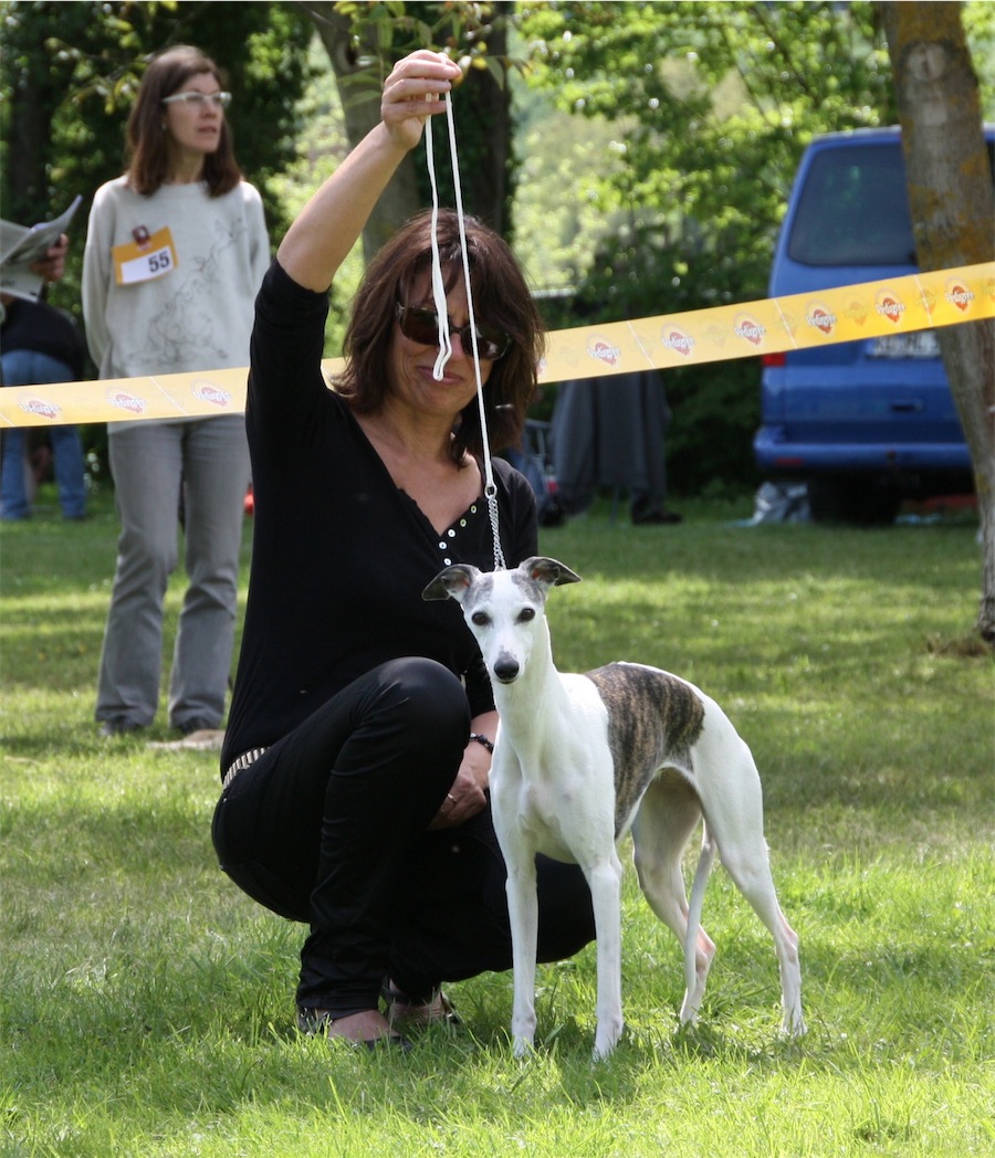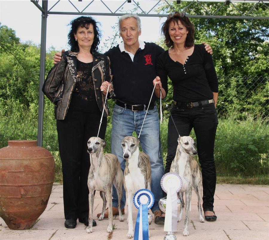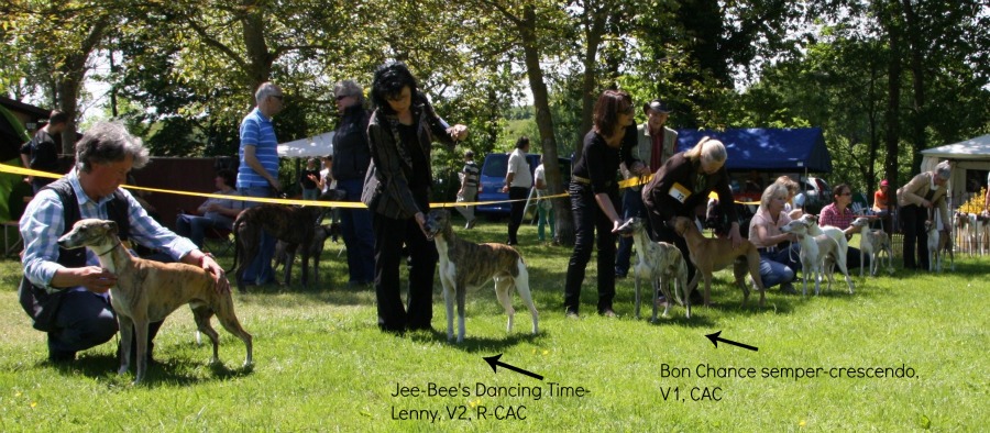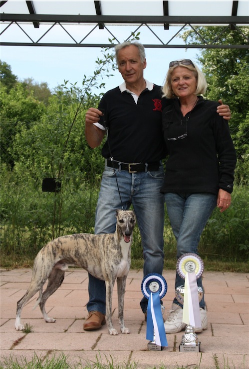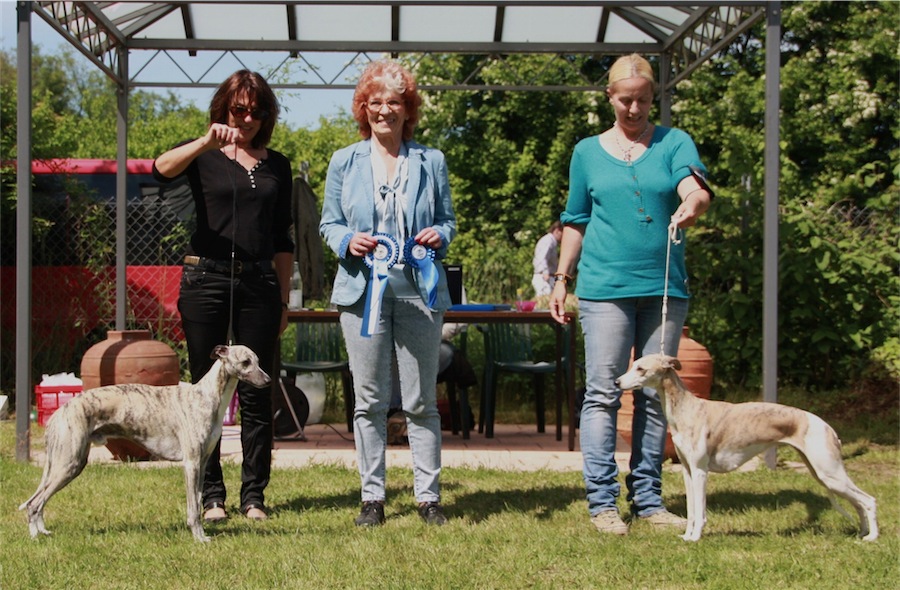 In Darmstadt auf der CAC-Ausstellung am Samstag, waren Papa, Söhne und Enkel erfolgreich. Herr Scheerens/B bewertete die gut besetzten Whippet-Klassen.