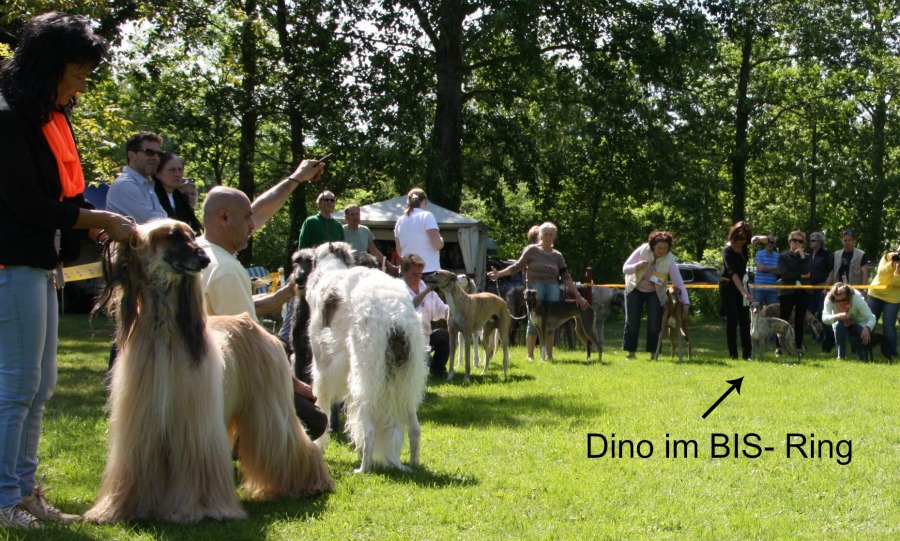 Für mich aber das schönste Ergebnis erzielte der junge Gianni, Grande Sorpresa semper-crescendo, (Dino’s Sohn) der auf Grund seiner Größe beim letzten mal ein sg bekam. Herr Scheerens schätze ihn trotz alle dem und gab ihm in der Jugendklasse das V2, R-J-CAC, R-J-VDH!
